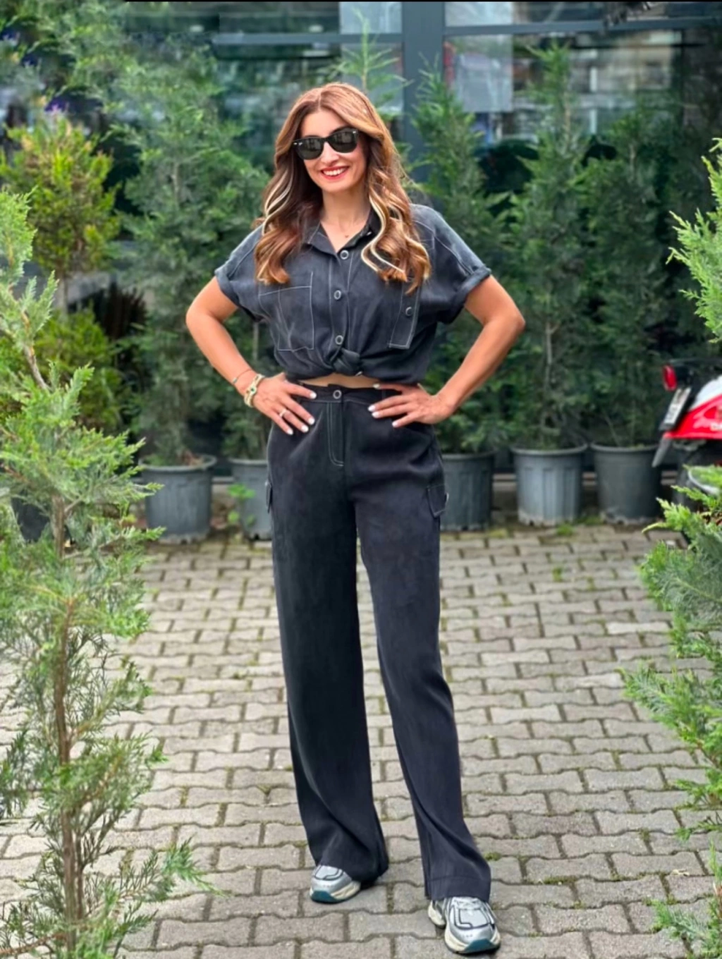 TABA SÜET DETAYLI YELEKLİ TASARIM TAKIM