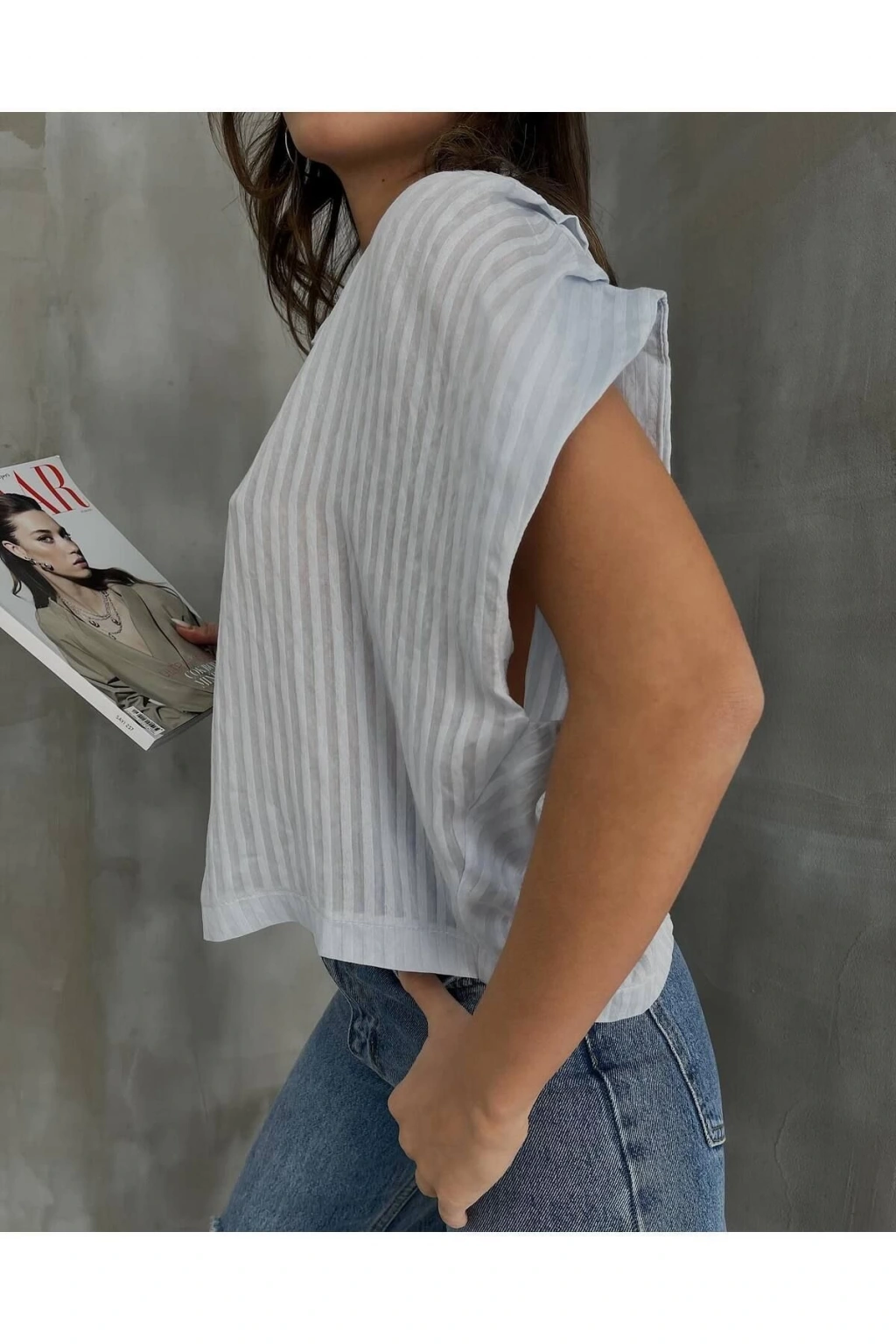 OMUZLARI PİLELİ MAVİ GÖMLEK