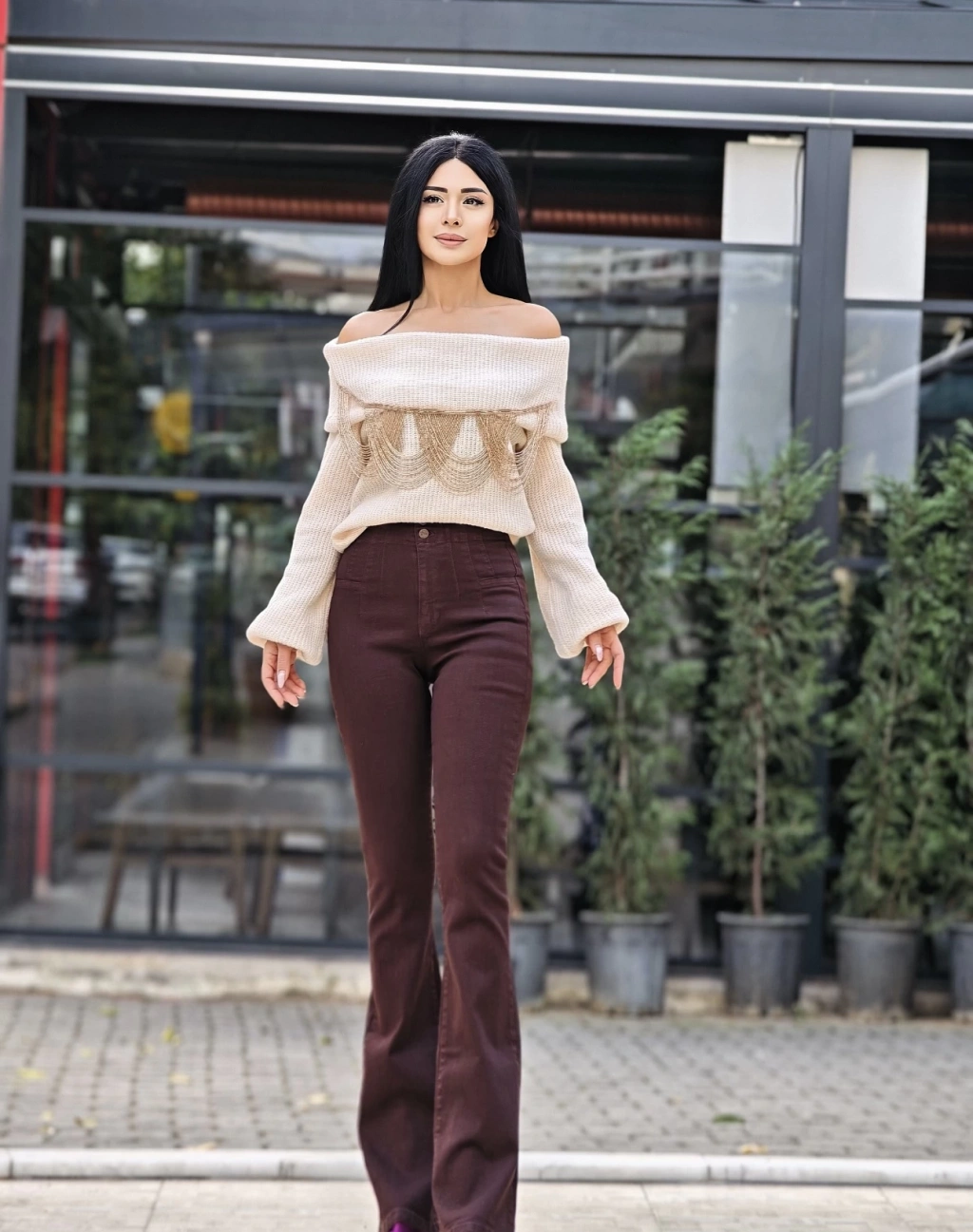 PENSLİ YÜKSEK BEL KAHVE PANTOLON