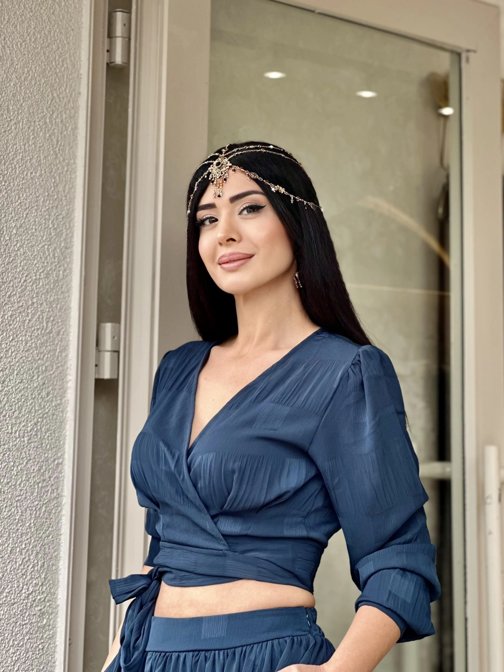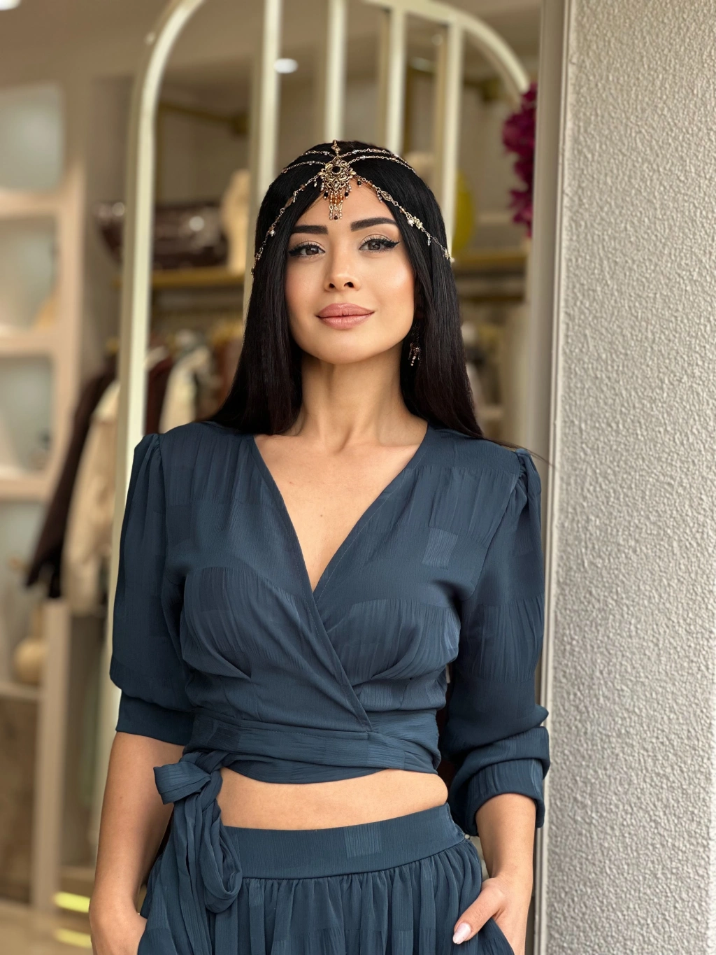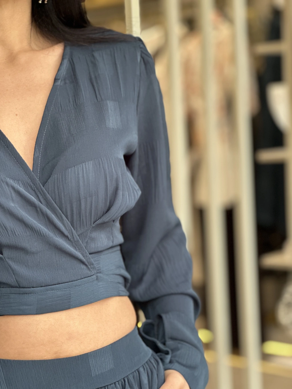 PARLAK DOKULU BLUZ