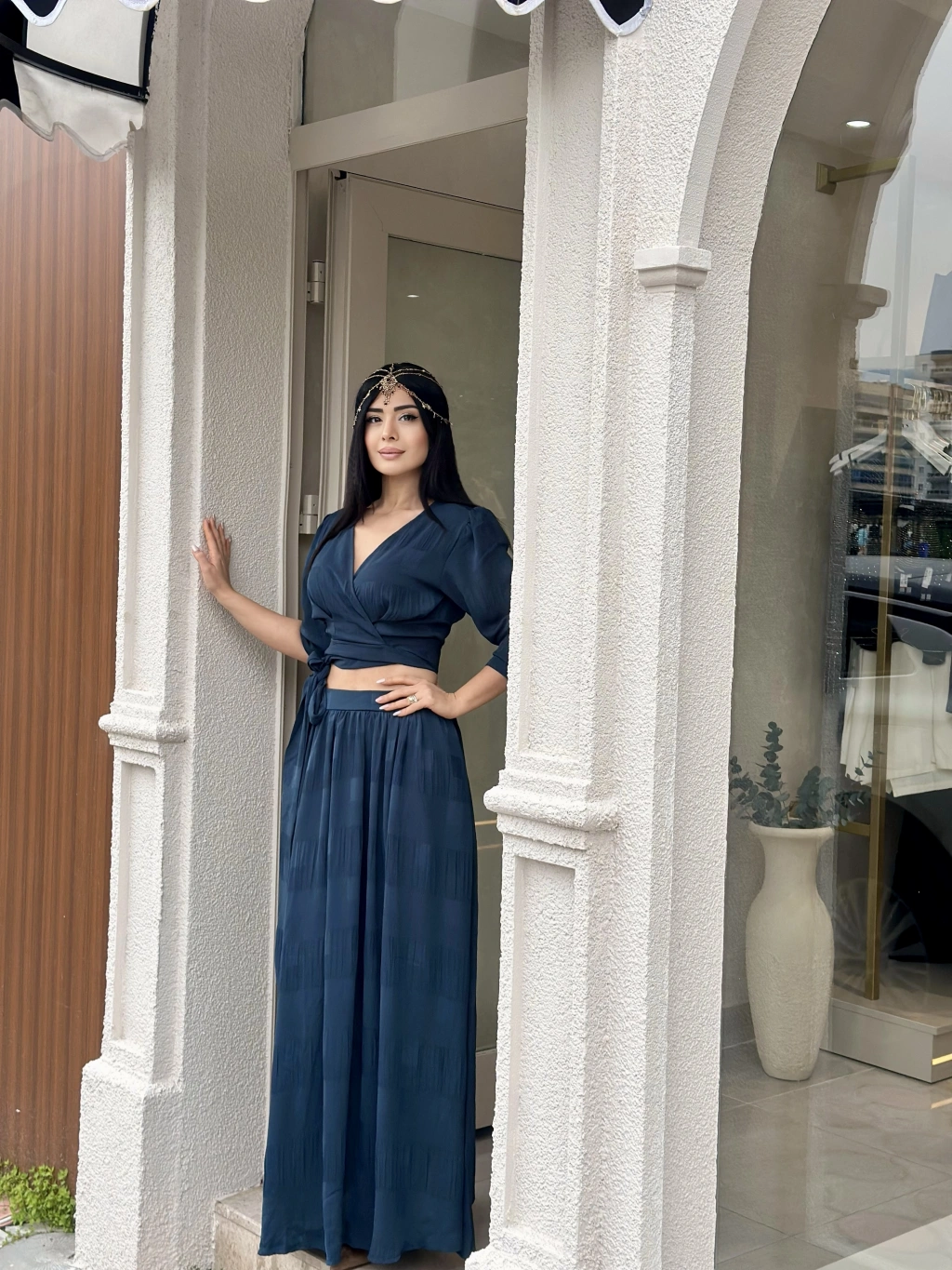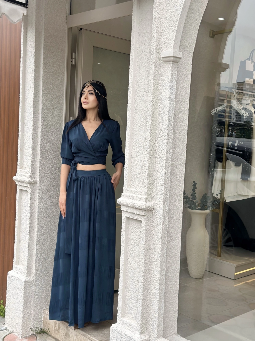 LACİVERT PİLELİ DÜĞMELİ ETEK