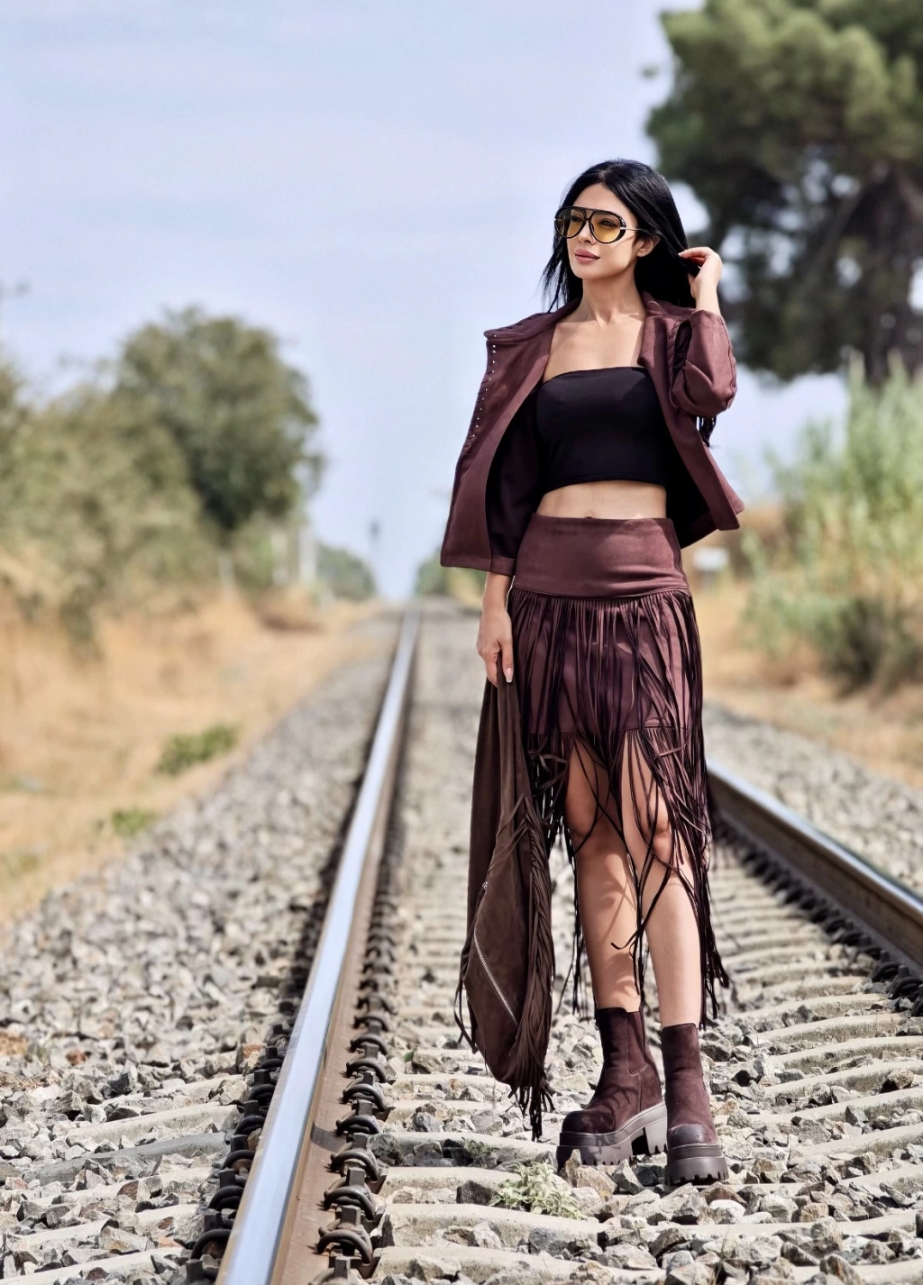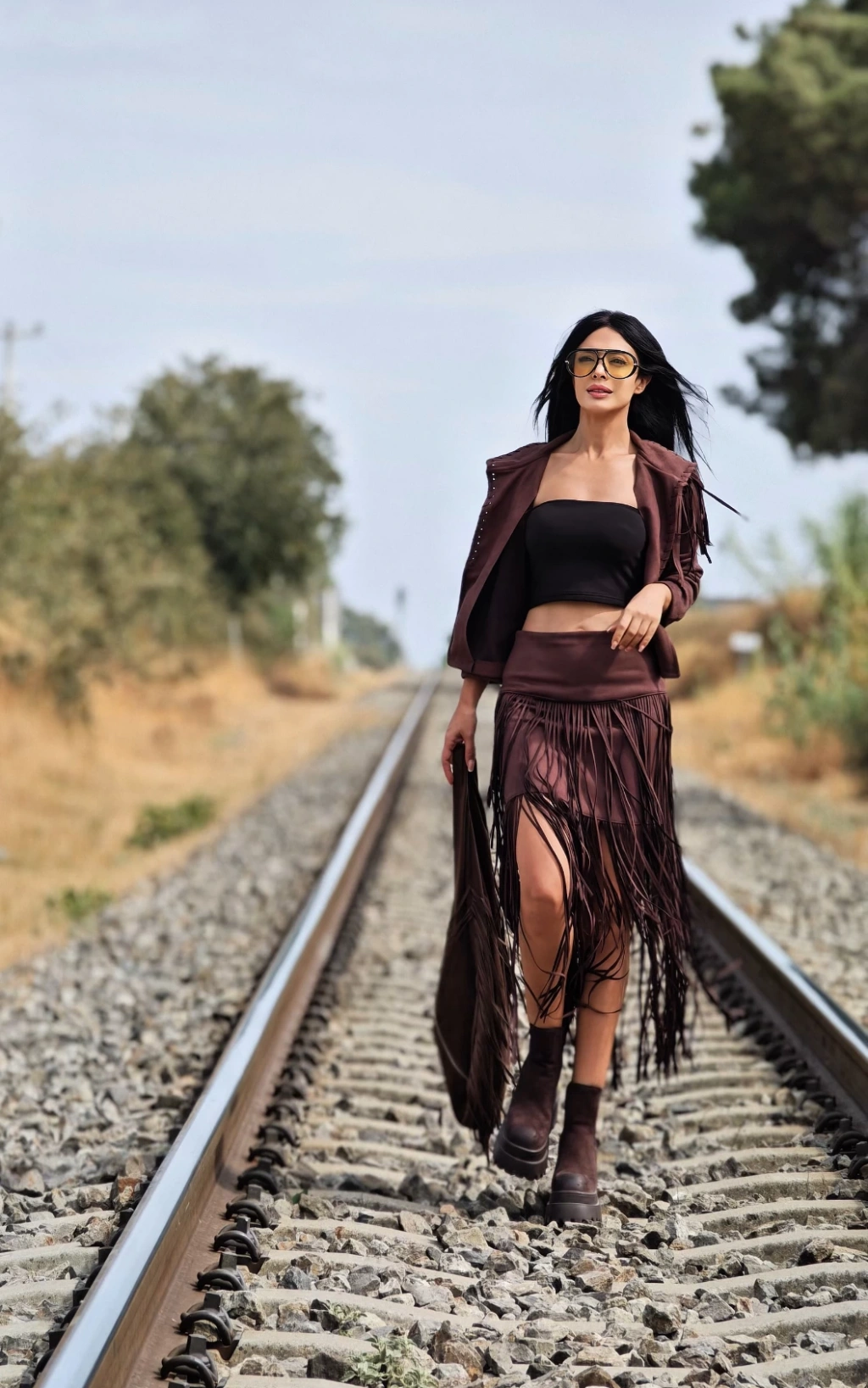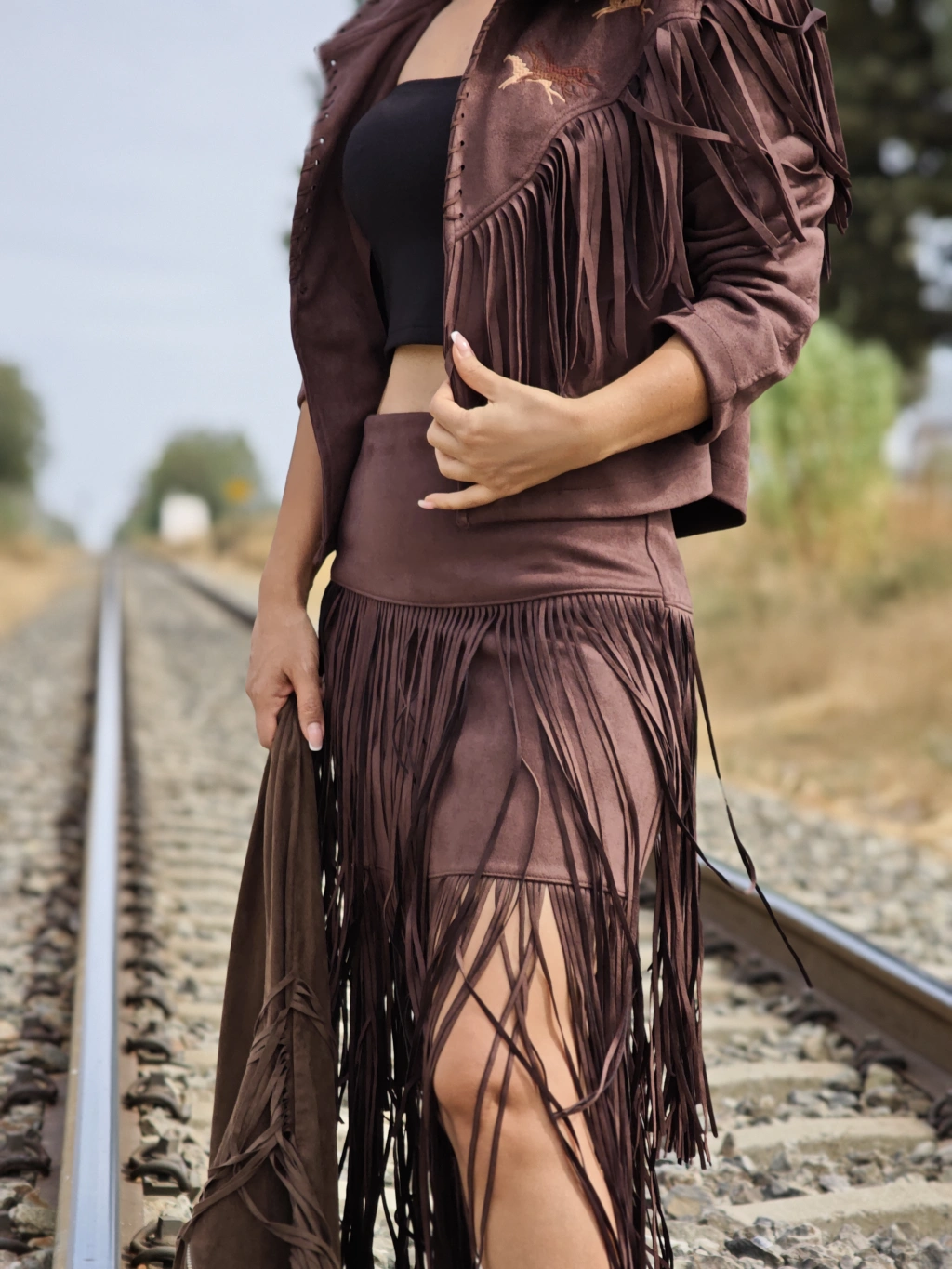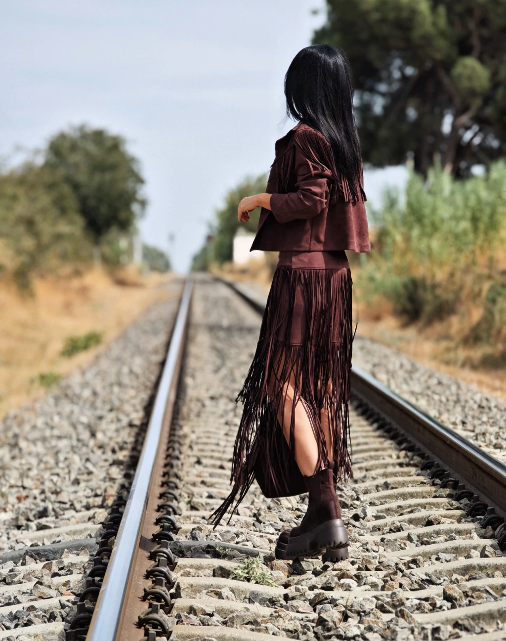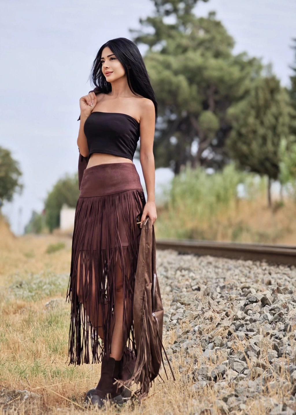 ACI KAHVE PÜSKÜLLÜ SÜET ETEK