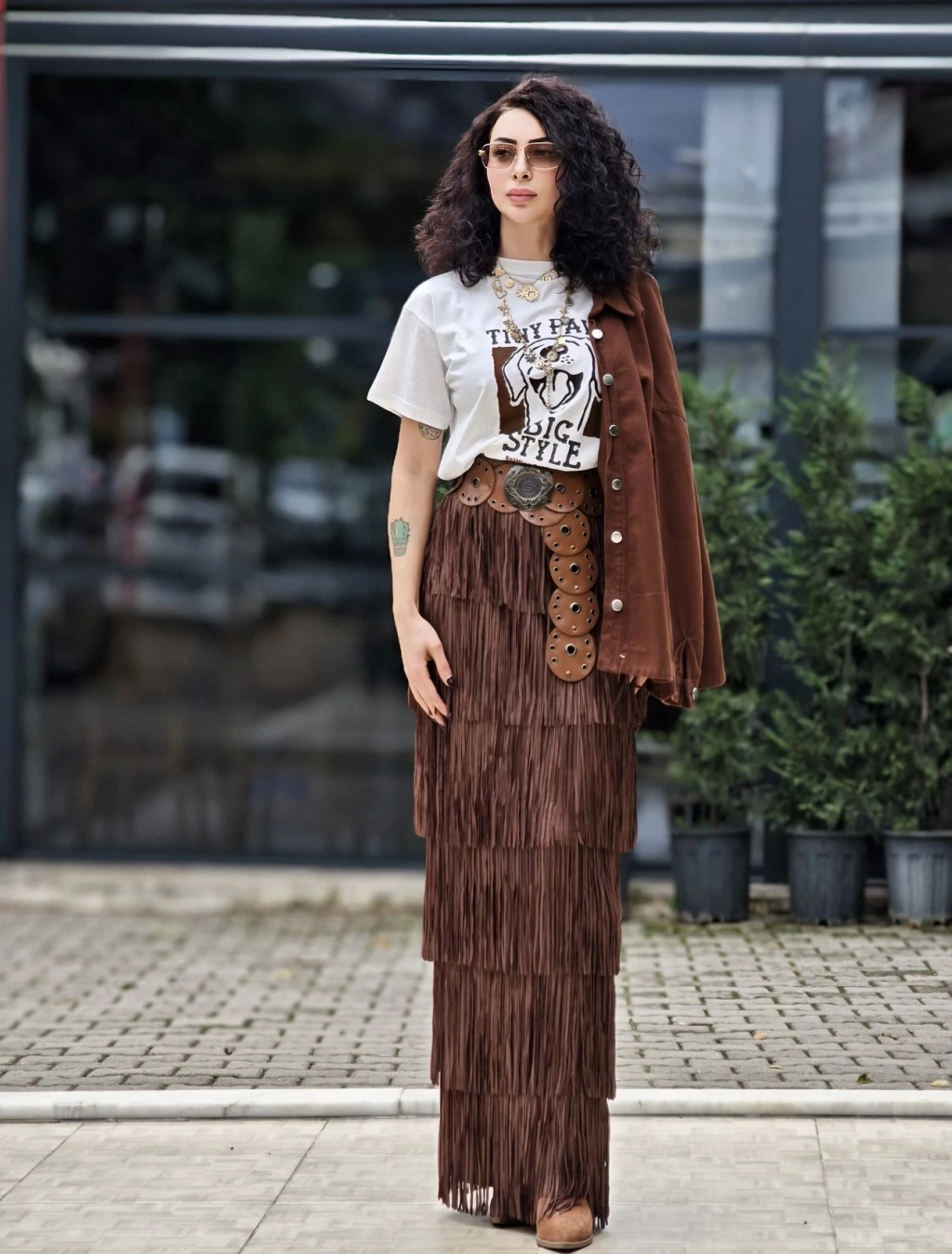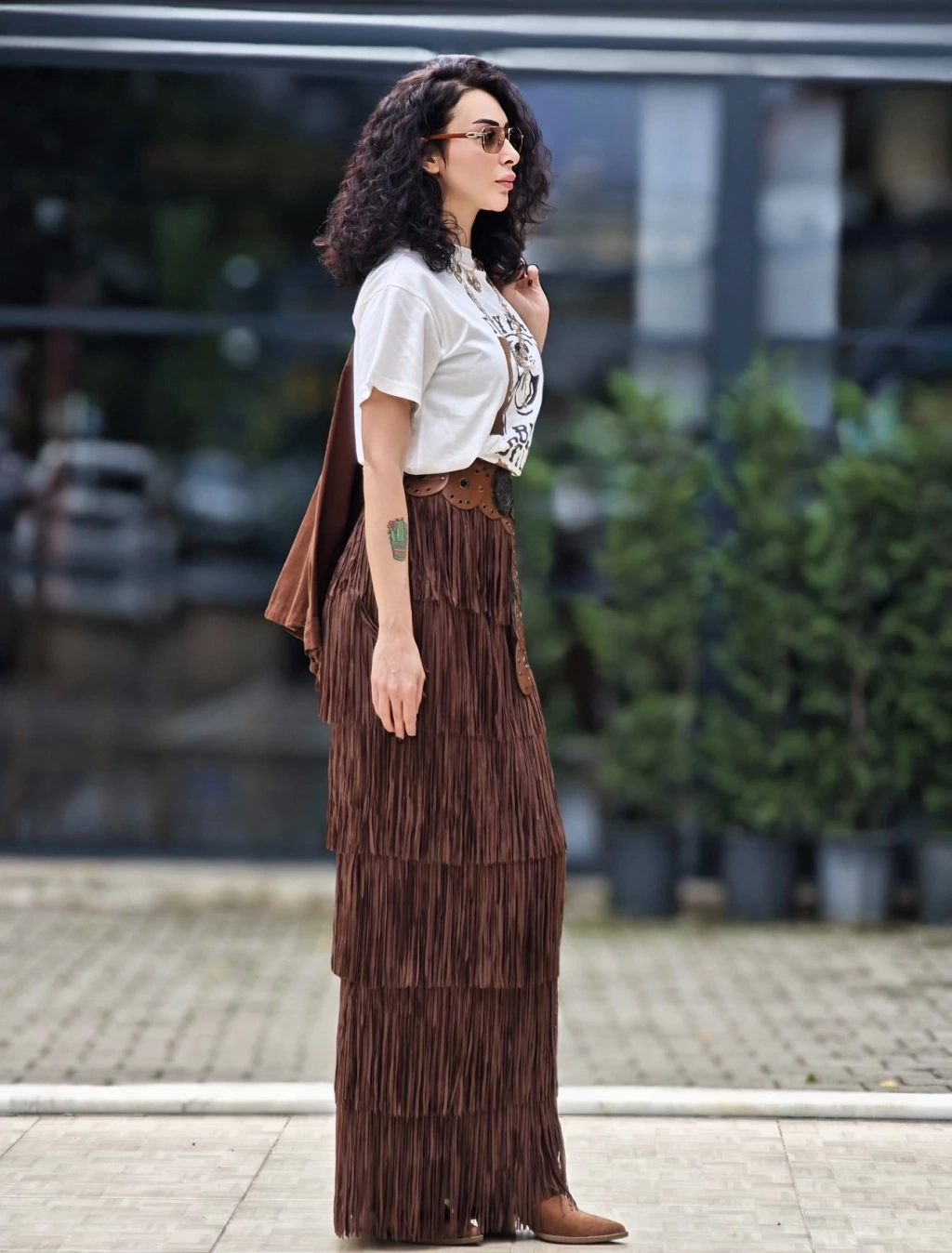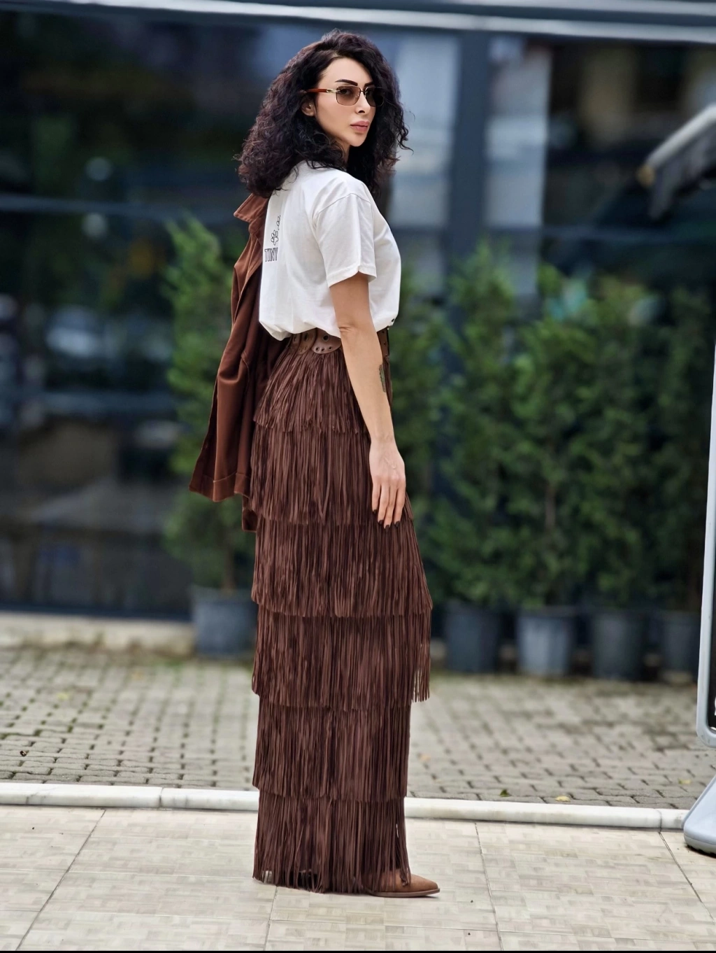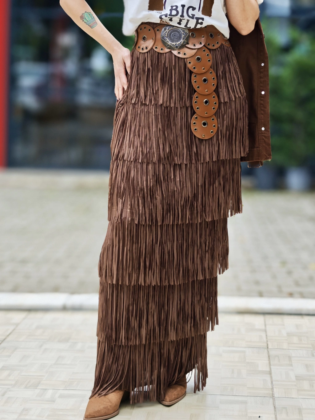 ACI KAHVE PÜSKÜLLÜ SÜET ETEK