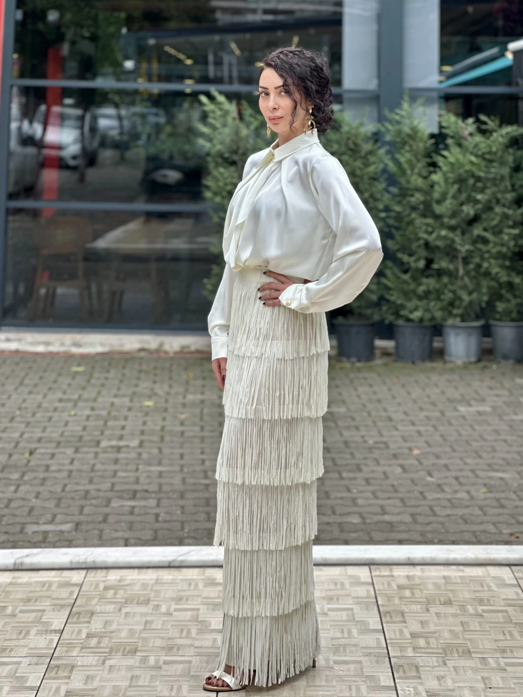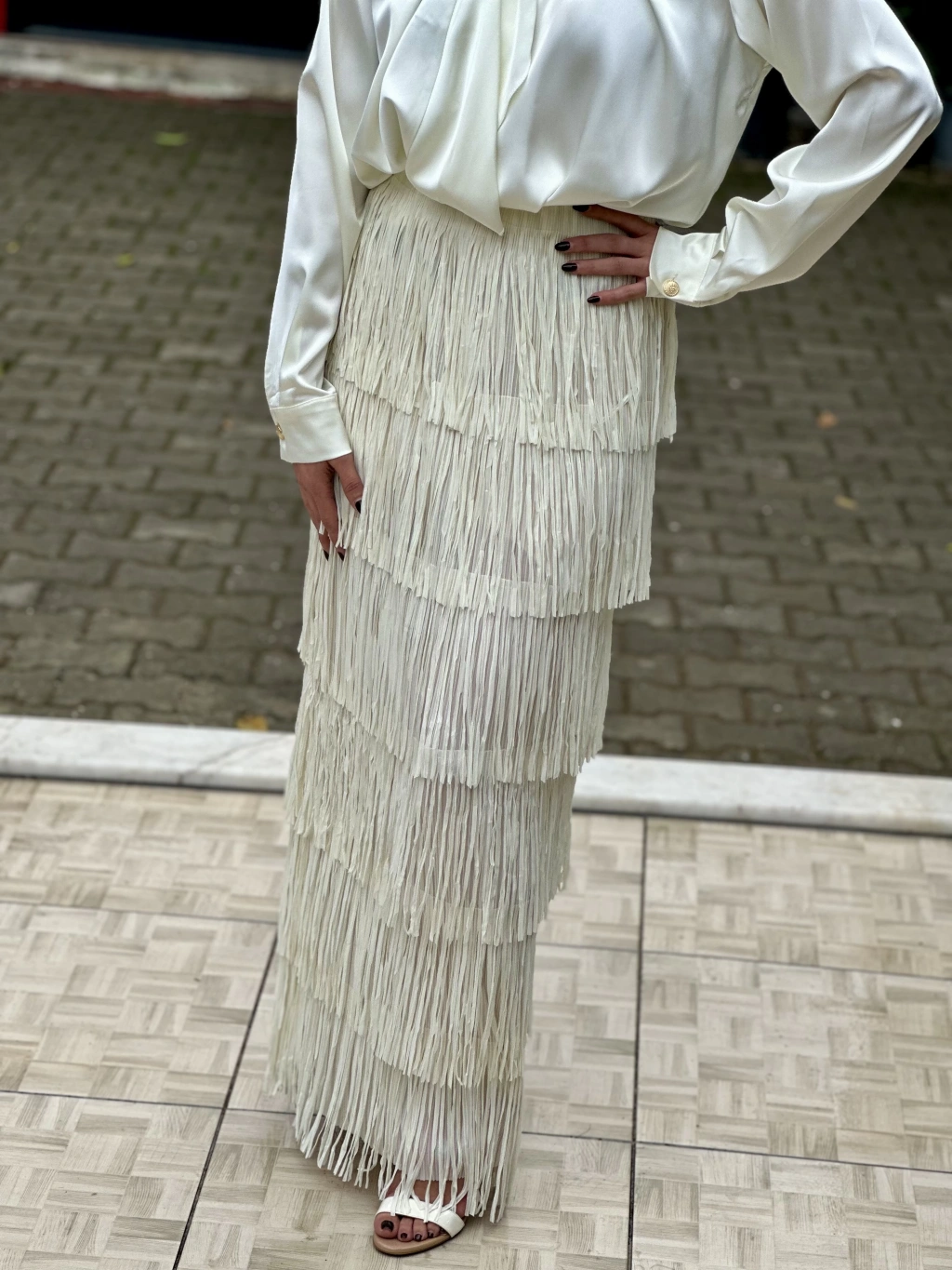 YİRTMAÇ DETAYLI NATUREL ETEK