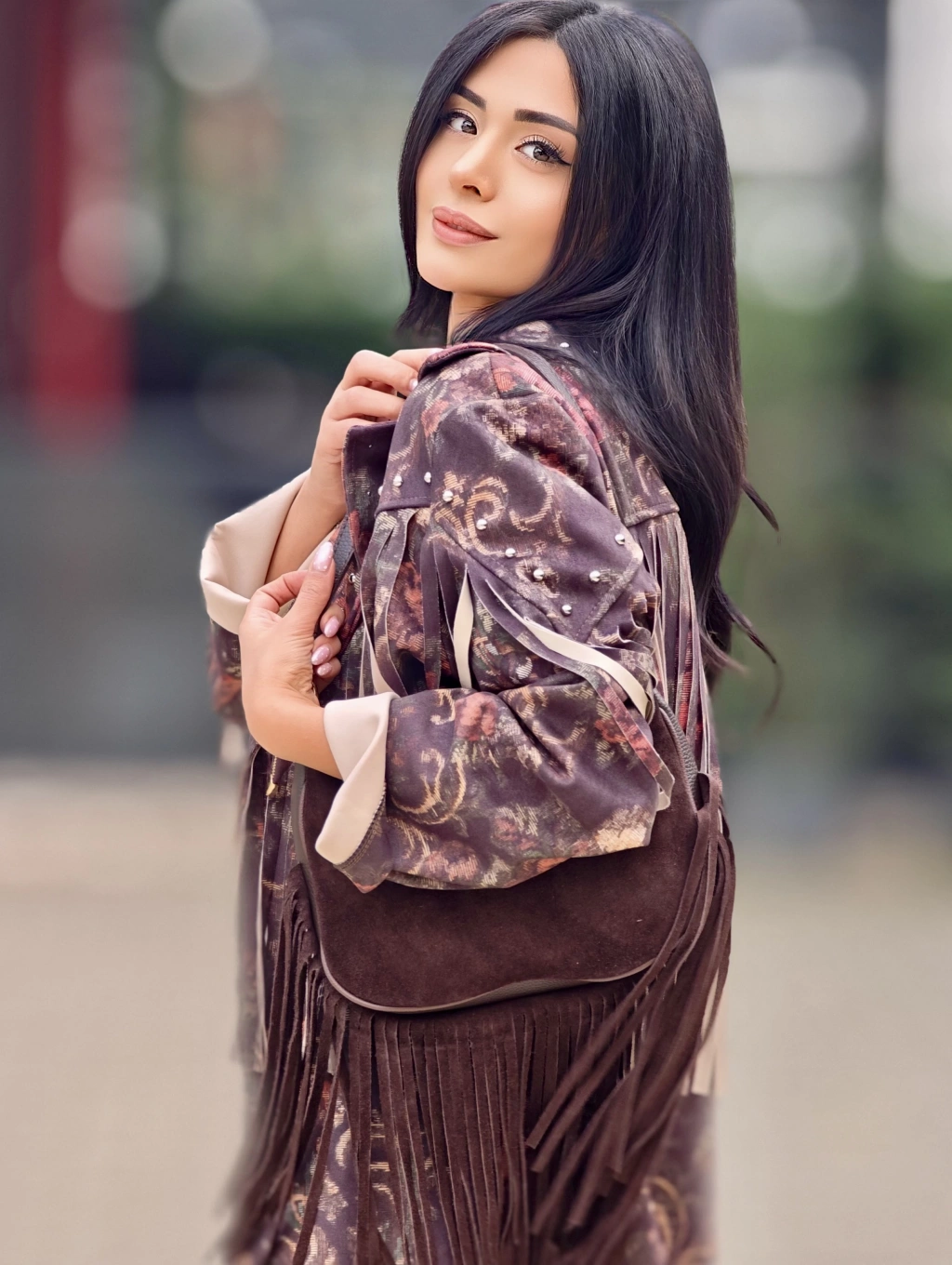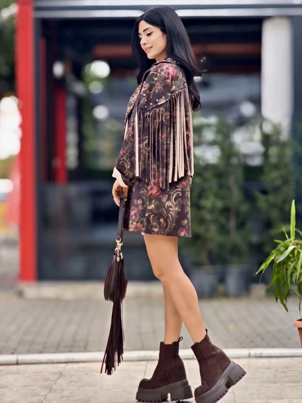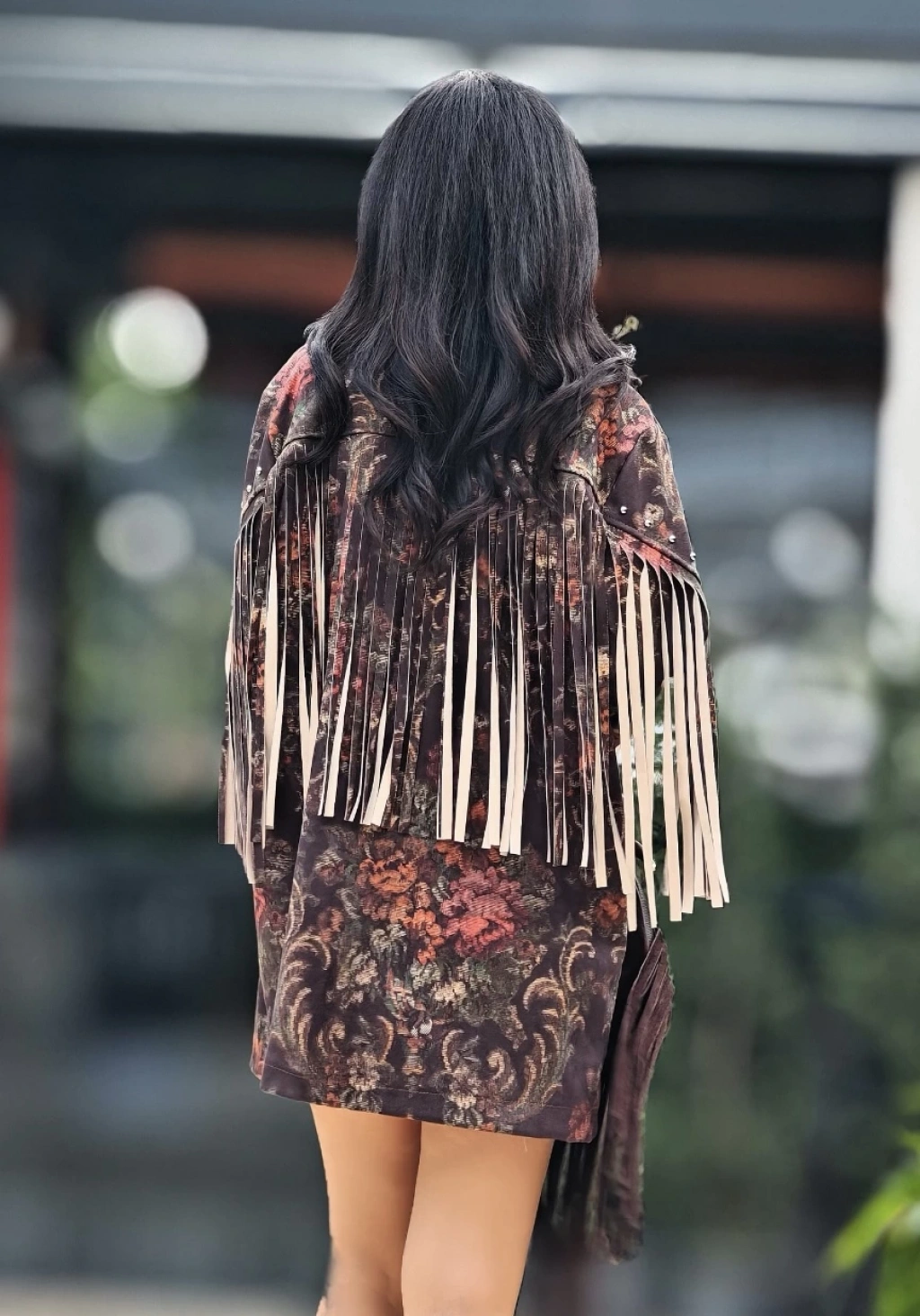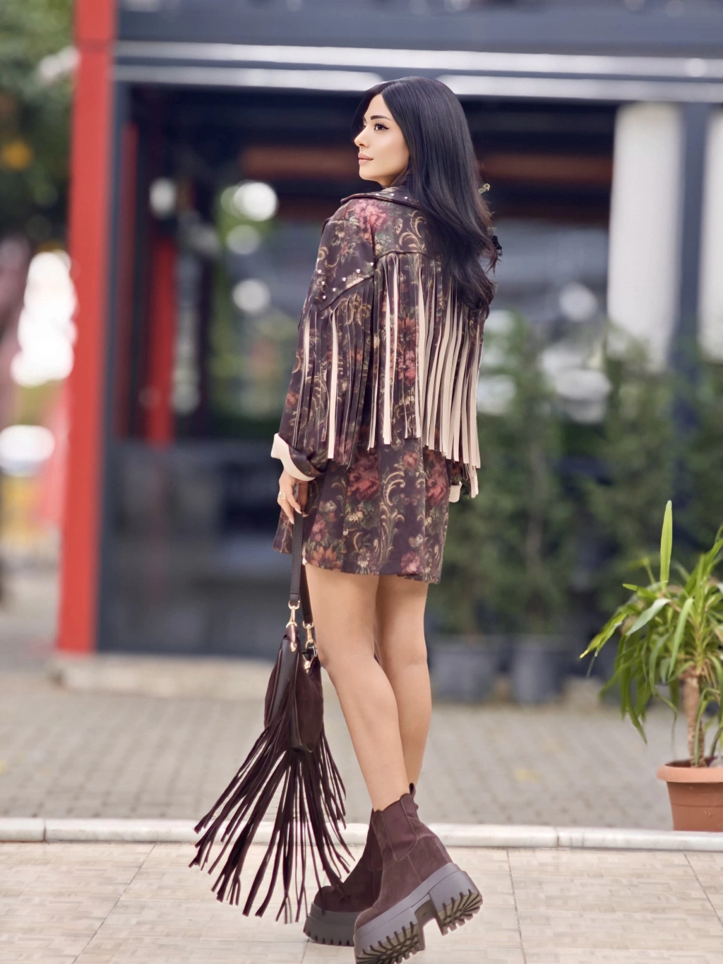 PÜSKÜLLÜ SÜET DETAYLI TASARIM JEAN CEKET