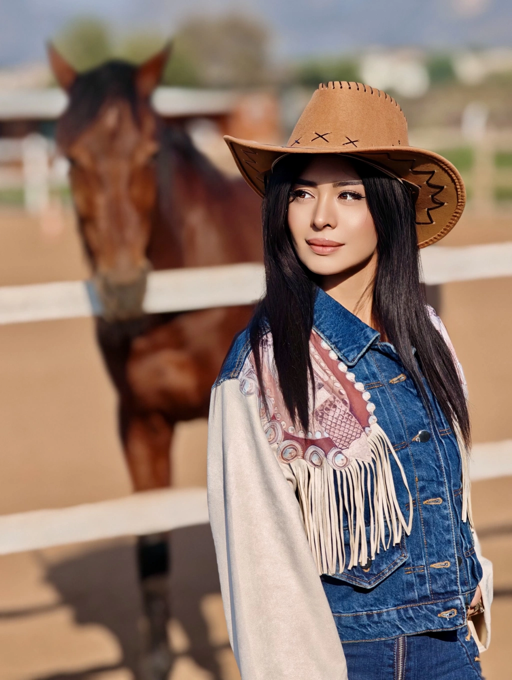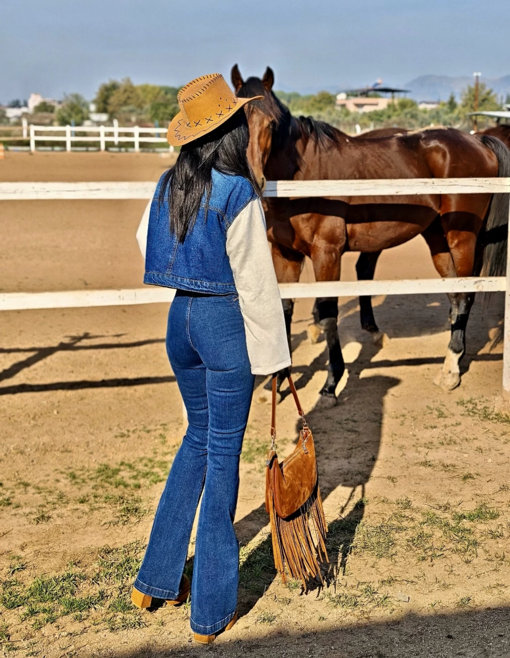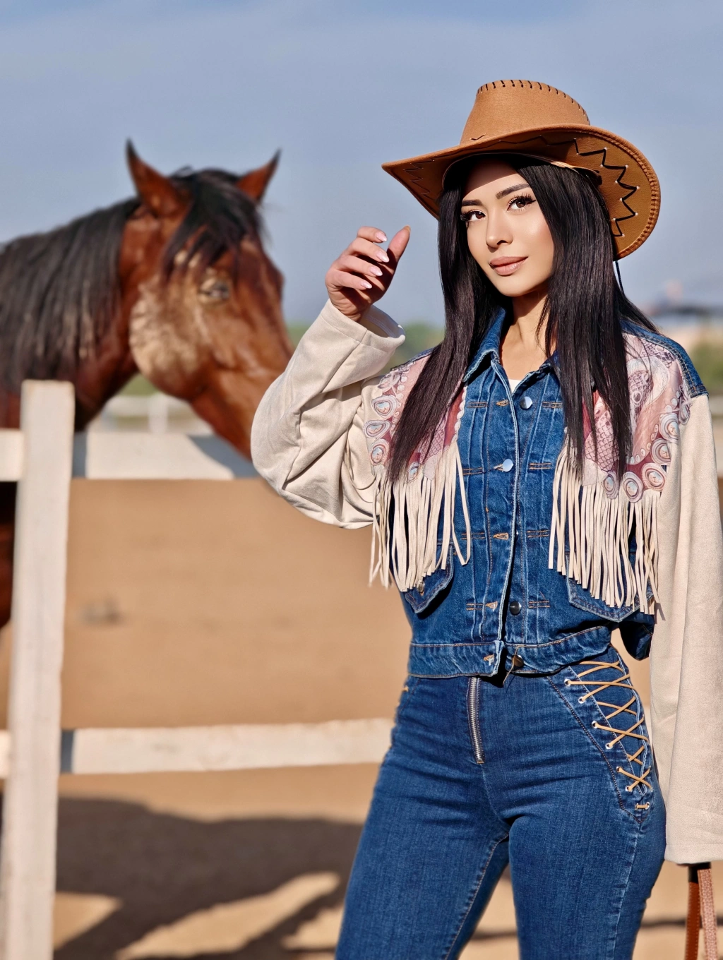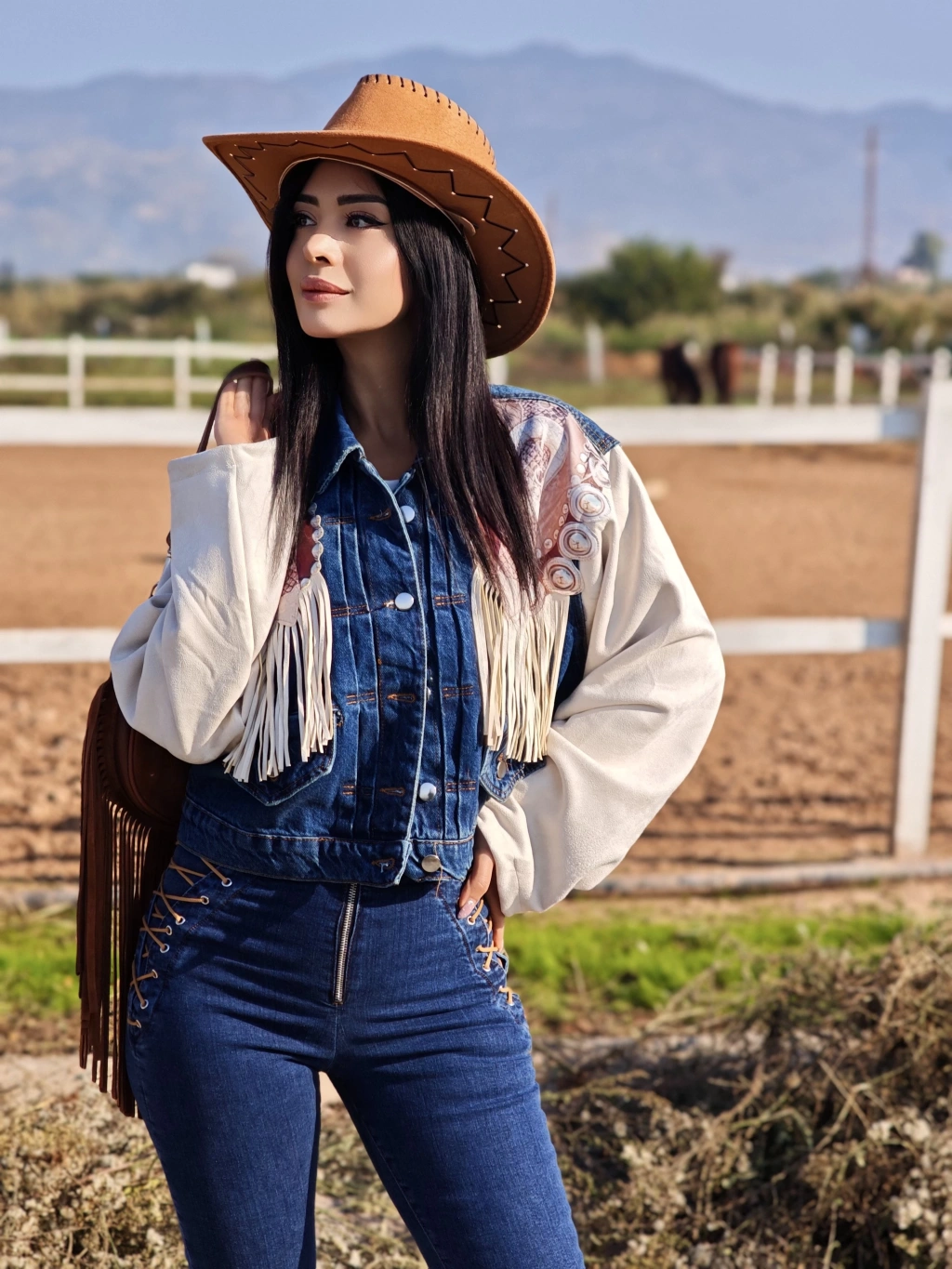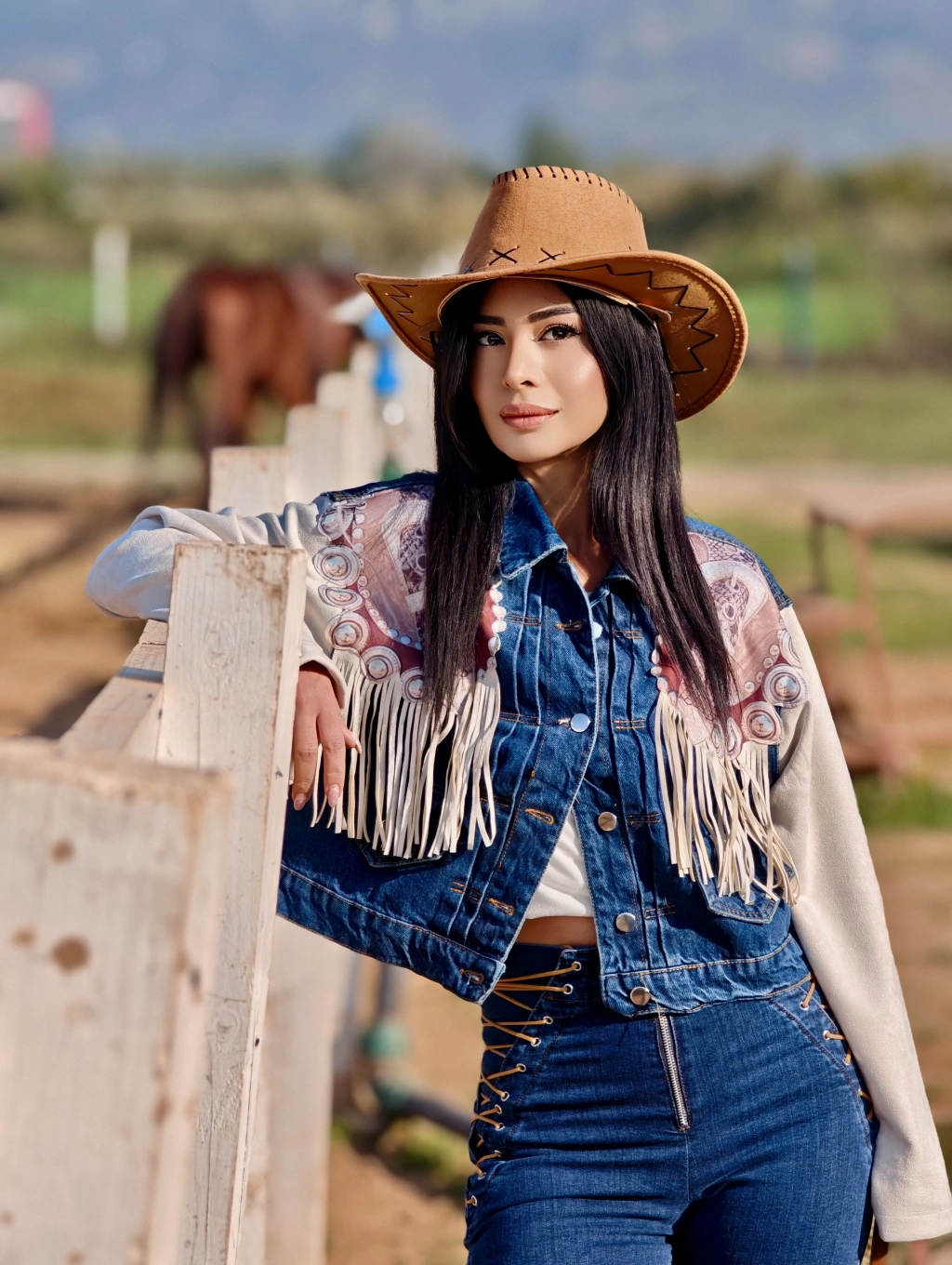 PÜSKÜLLÜ SÜET DETAYLI TASARIM JEAN CEKET