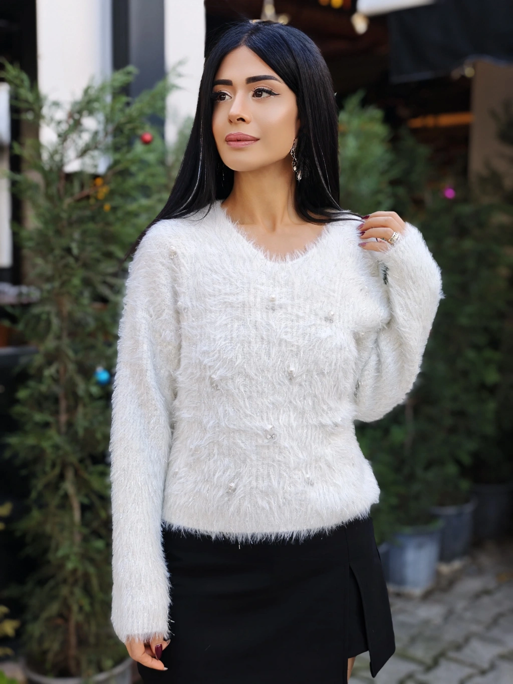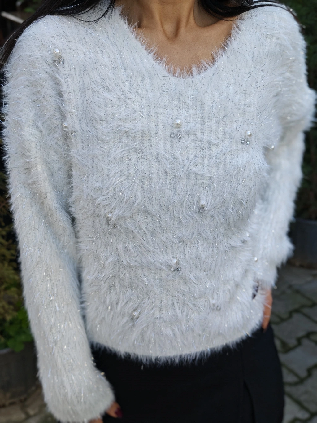 İNCİ DETAY YUMOŞ BEYAZ KAZAK