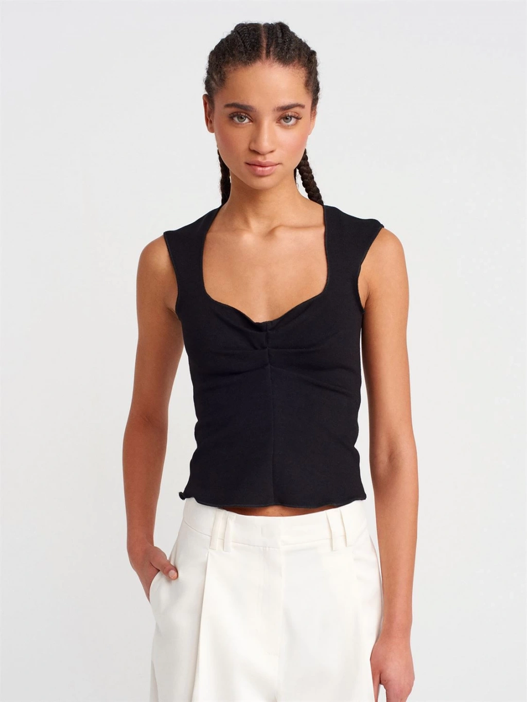 JEAN DETAYLI TASARIM BLUZ SİYAH