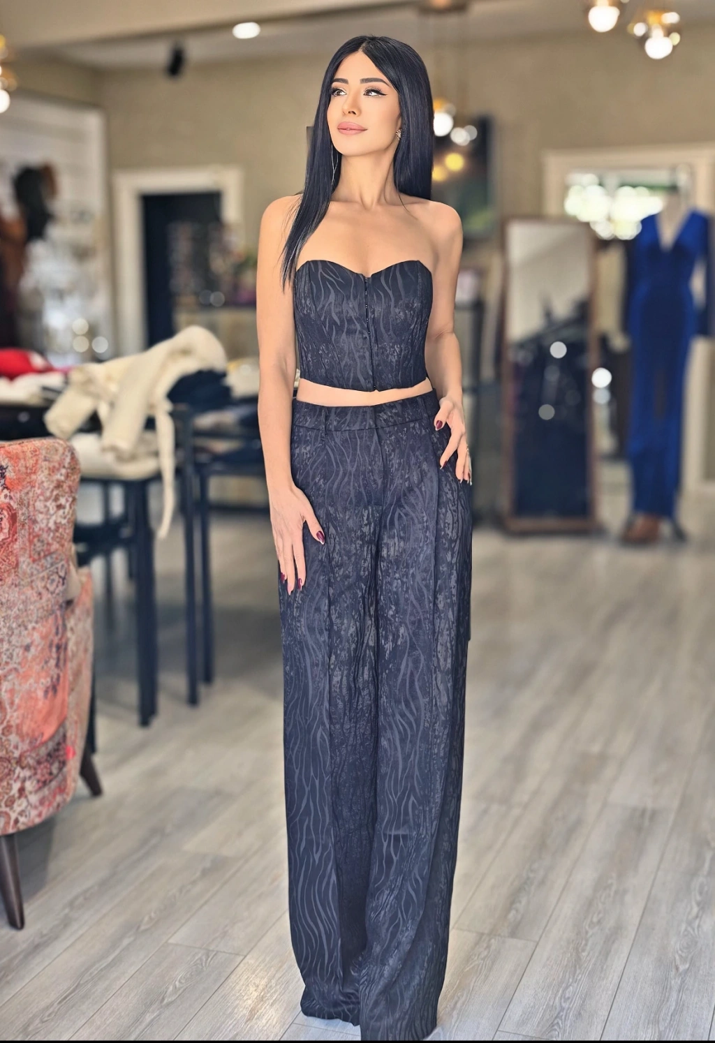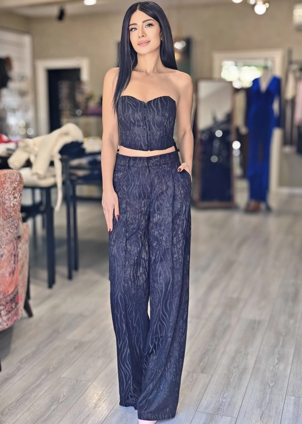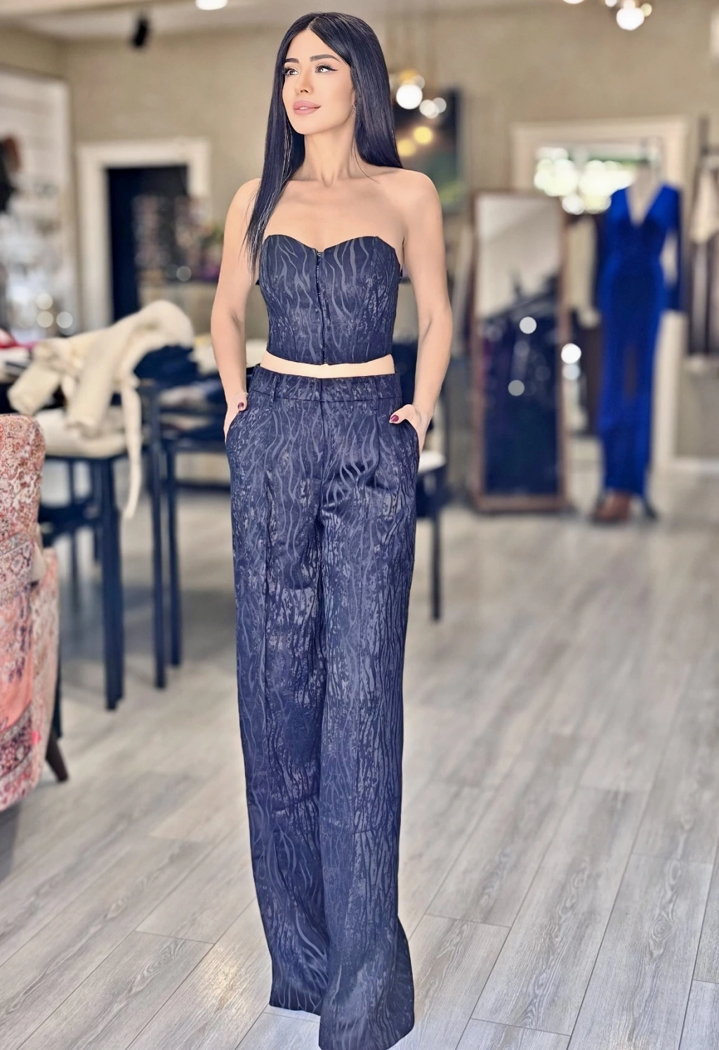 GÖMLEK DETAY LACİVERT BLAZER CEKET