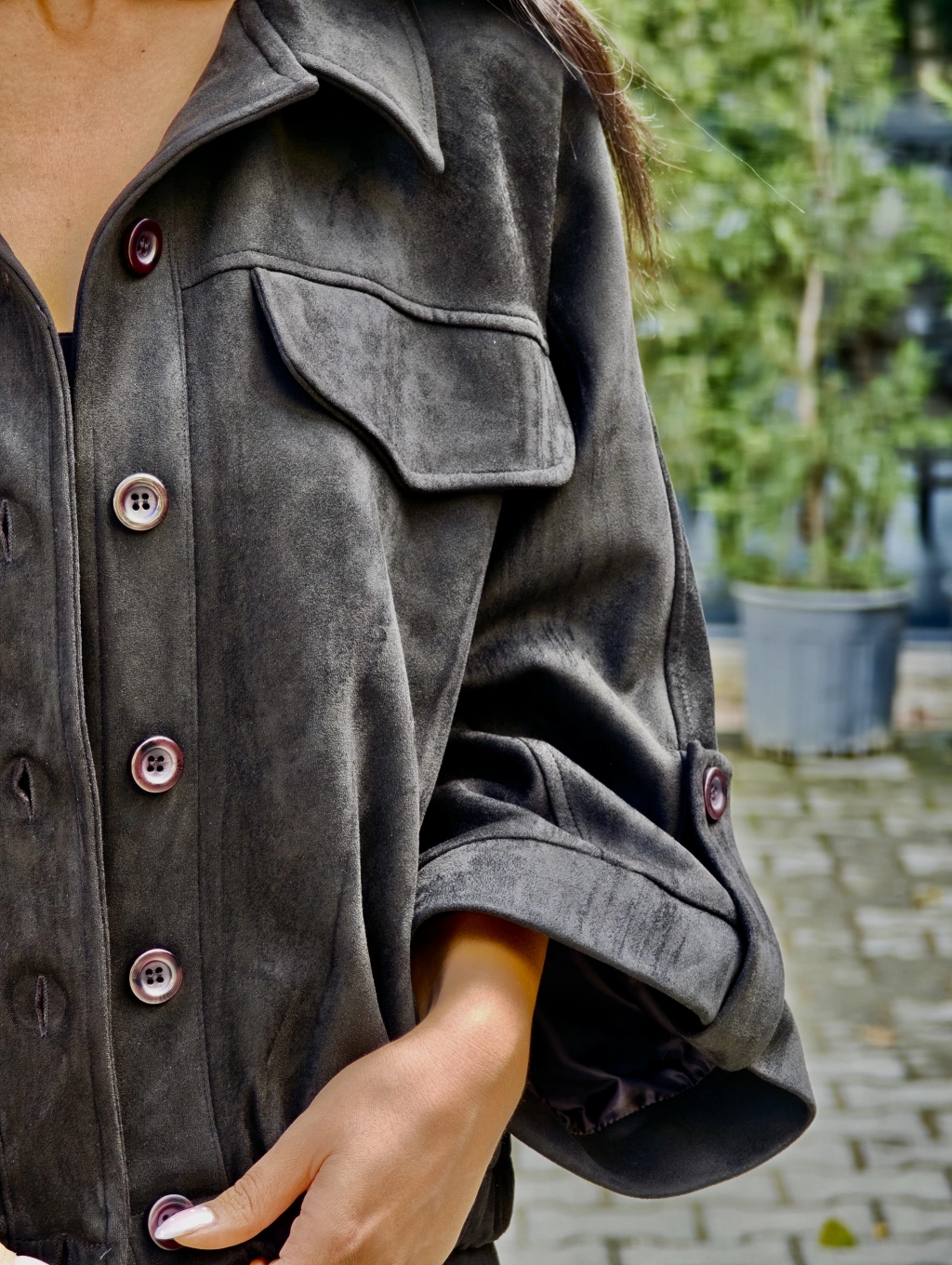 DÜĞMELİ BELE OTURAN CEKET