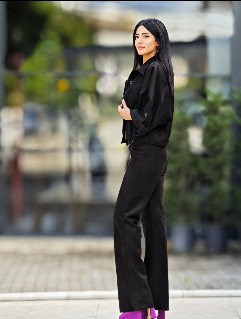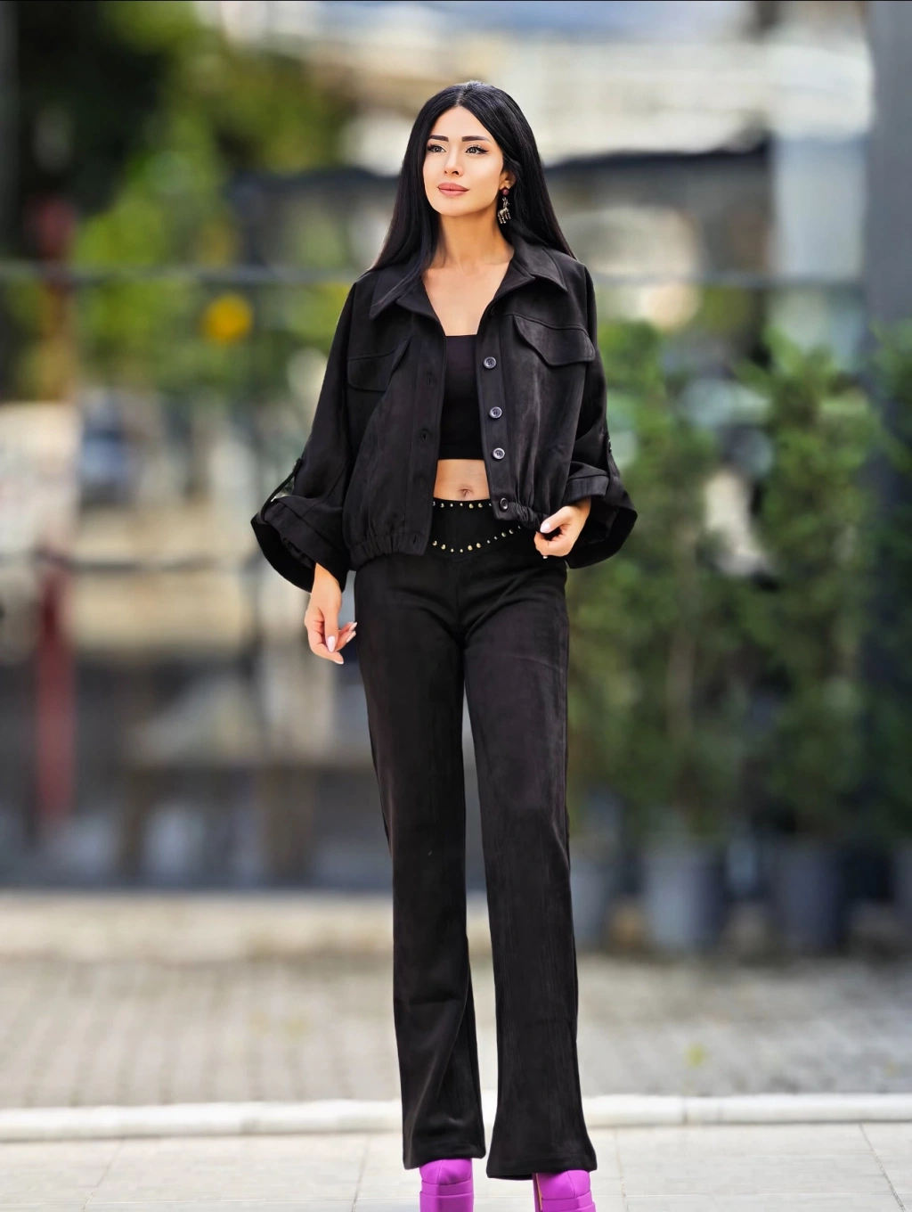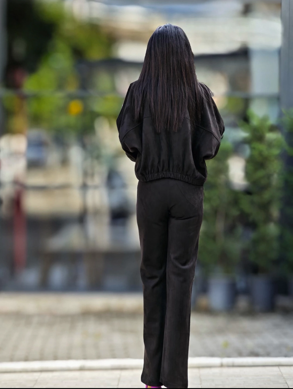 SİYAH SÜET ÇAKIMLI PANTOLON