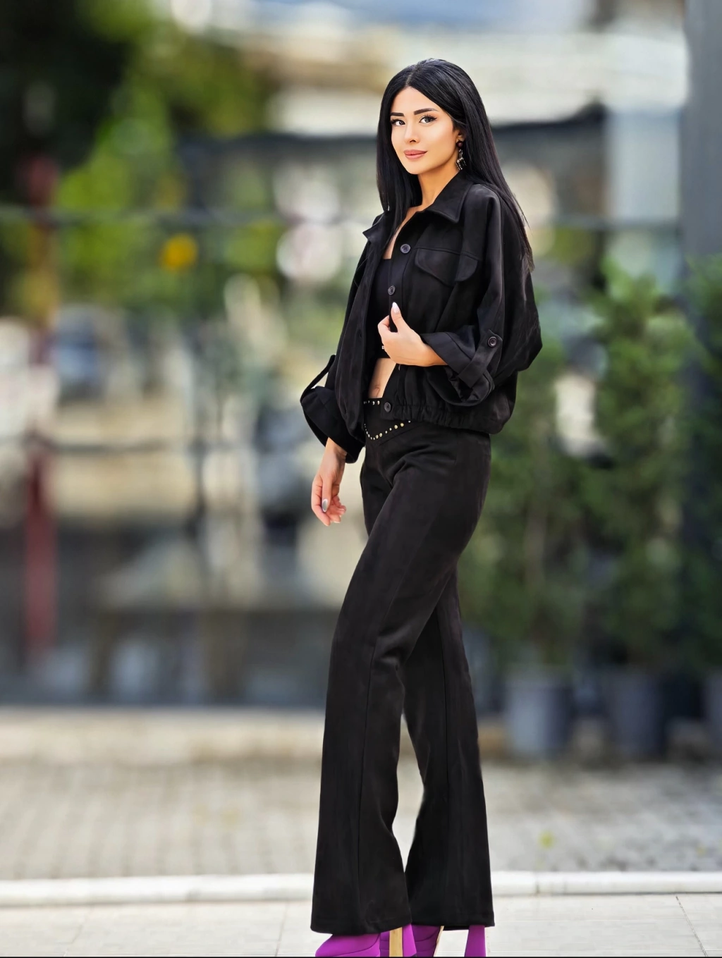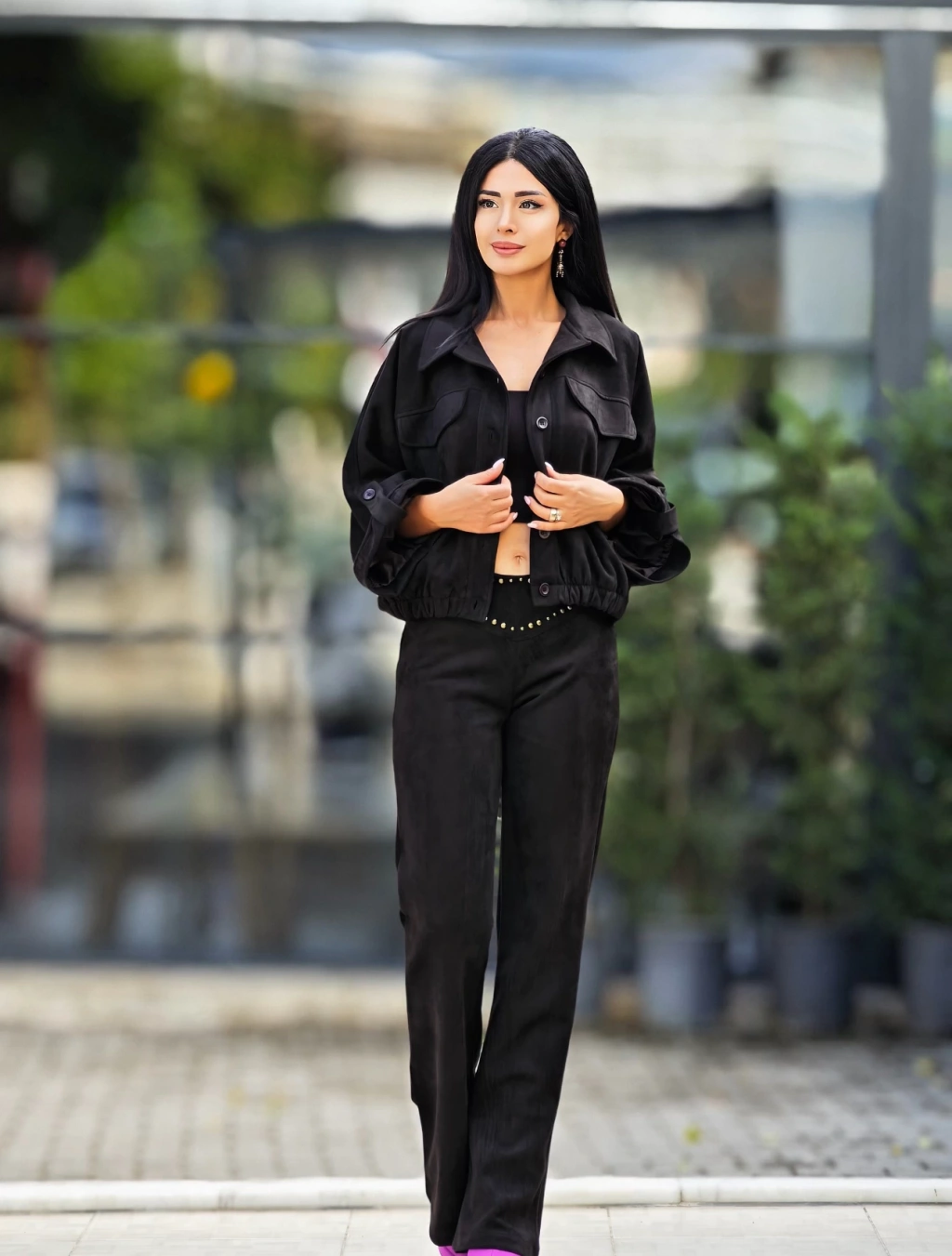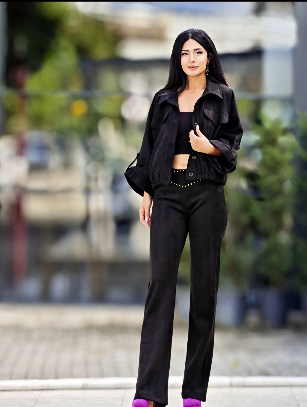 SİYAH SÜET ÇAKIMLI PANTOLON