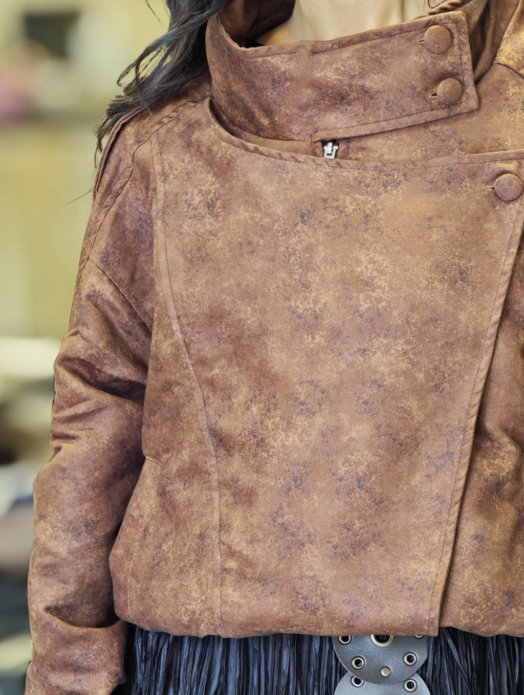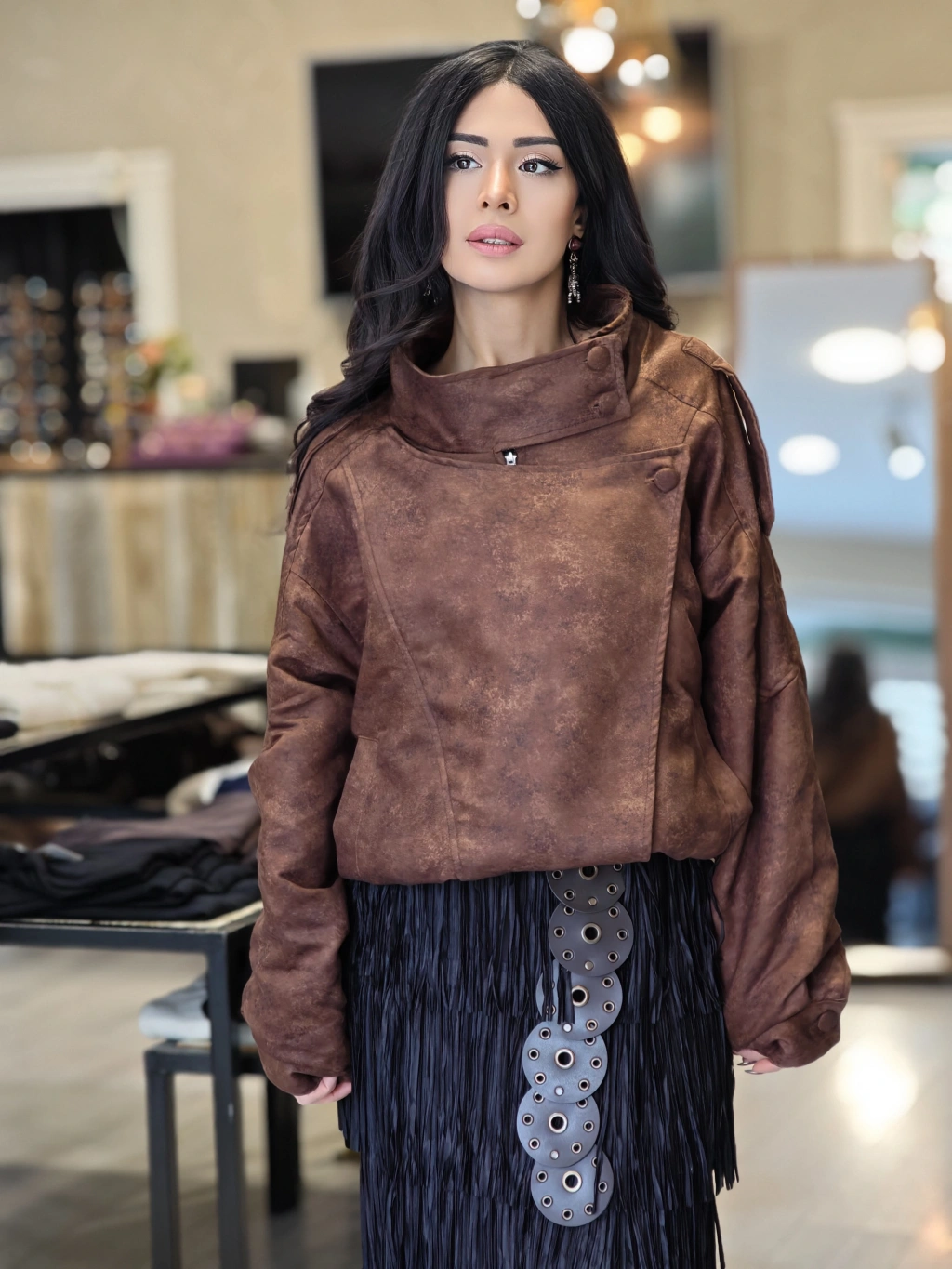 ÖNÜ KESİK DETAY TASARIM DERİ CEKET