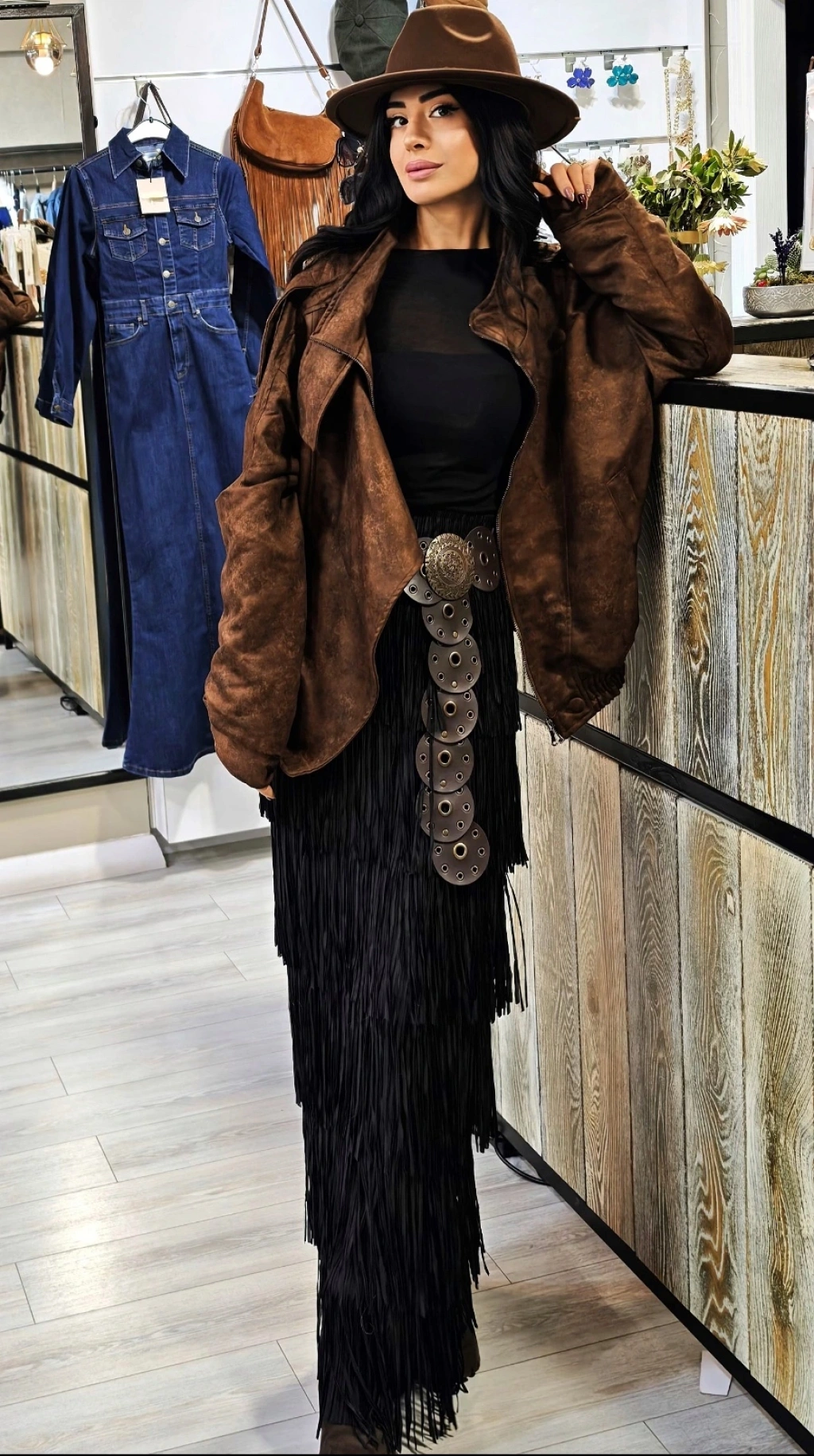 PÜSKÜLLÜ SÜET DETAYLI TASARIM JEAN CEKET