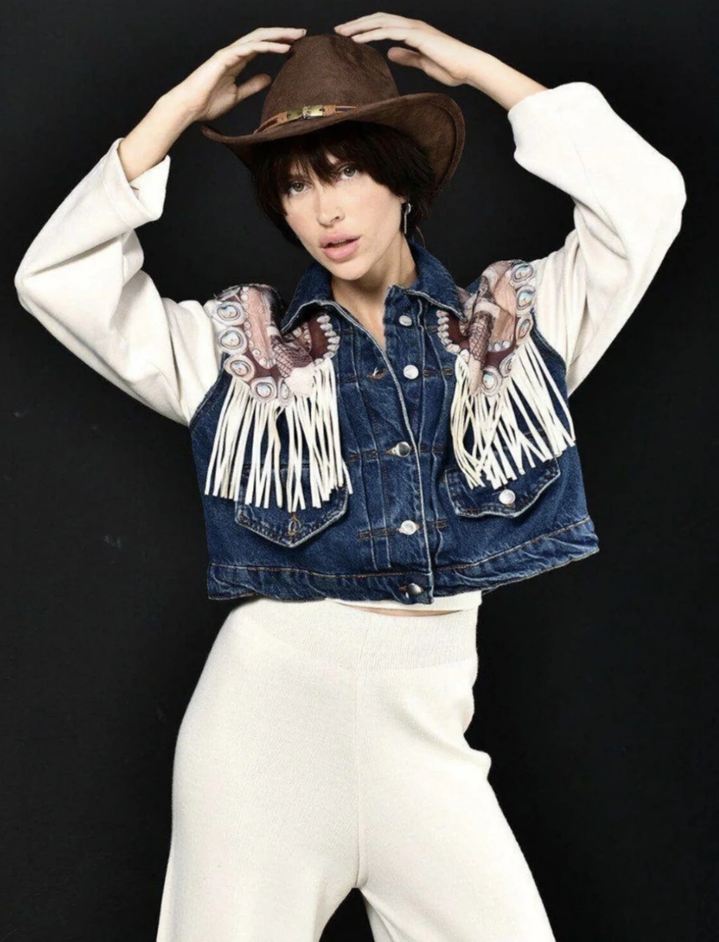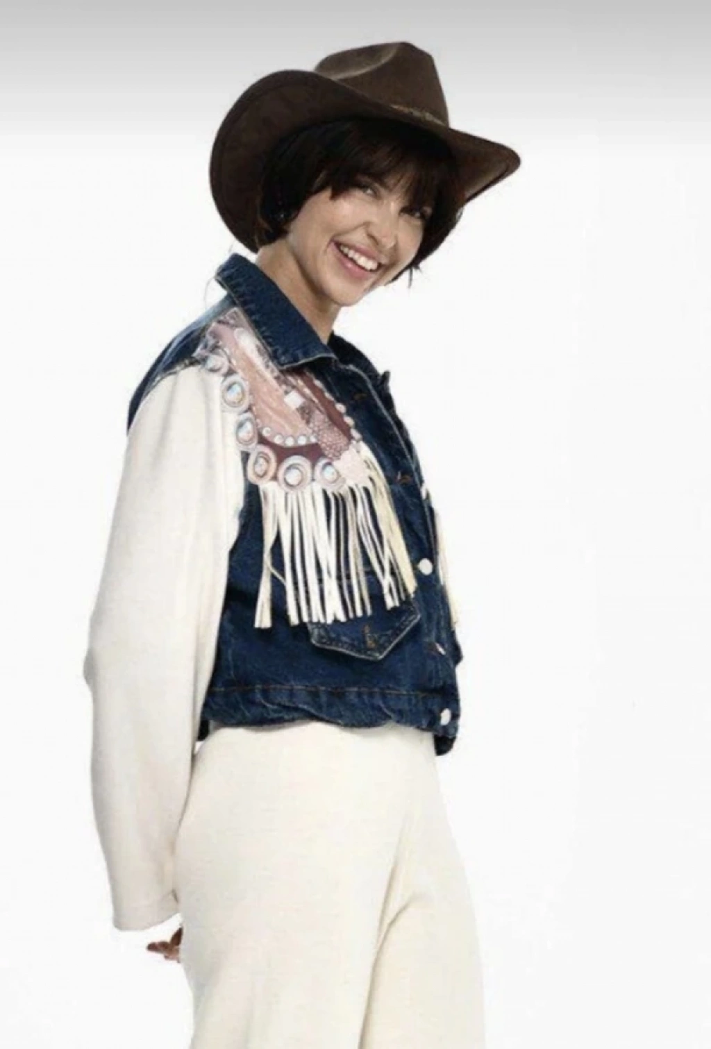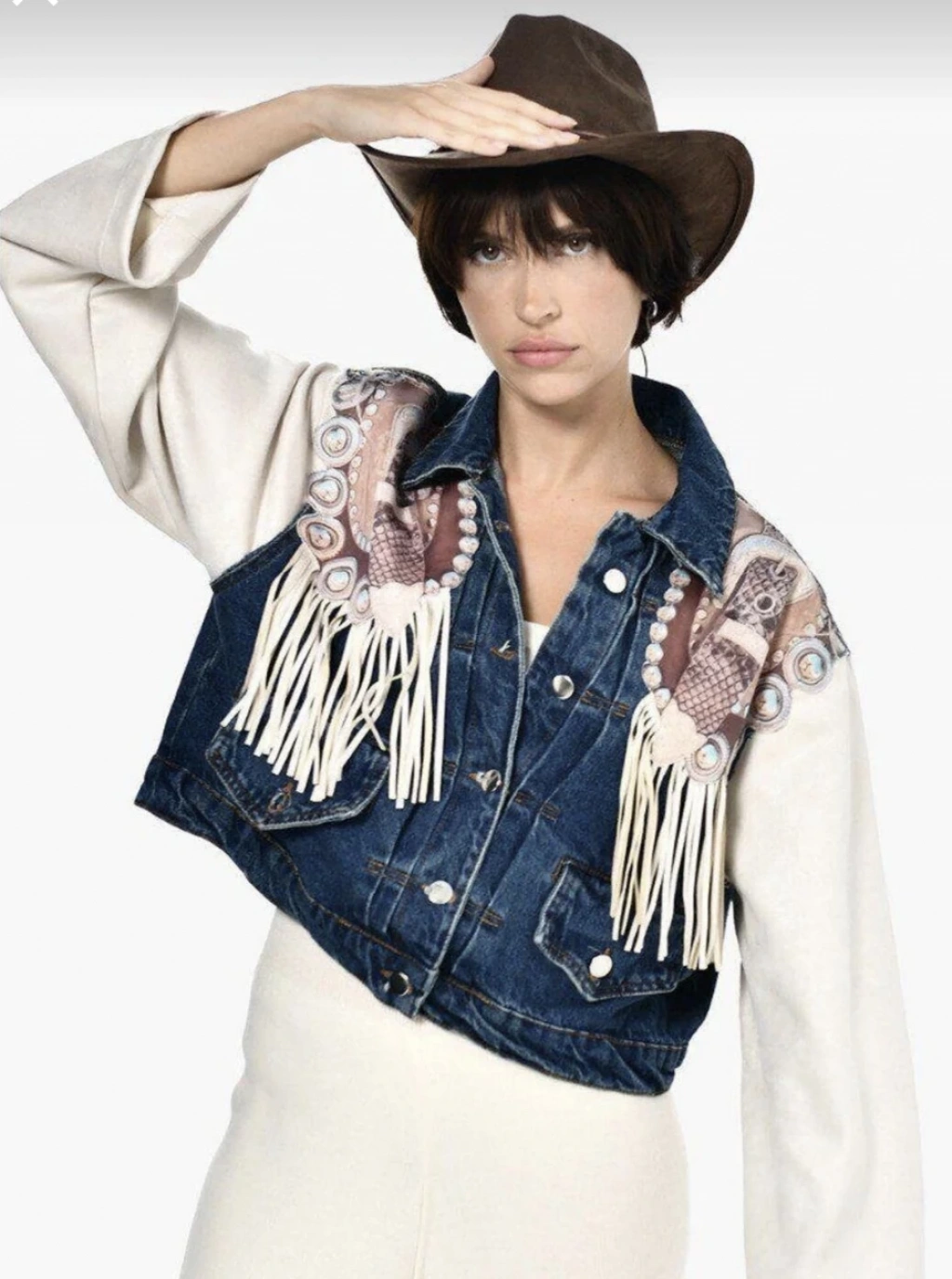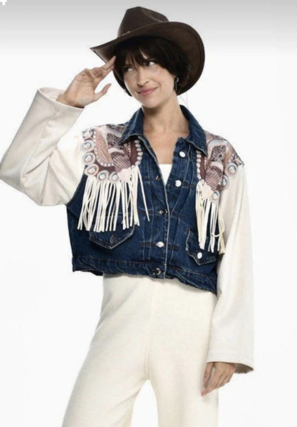 SÜET PÜSKÜL DETAYLI JEAN CEKET