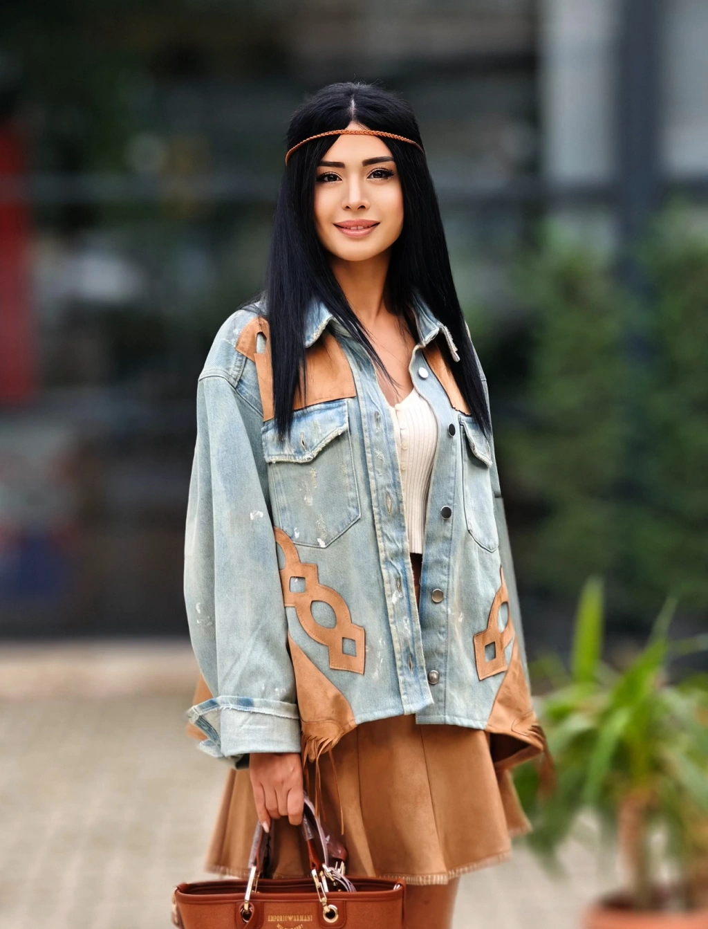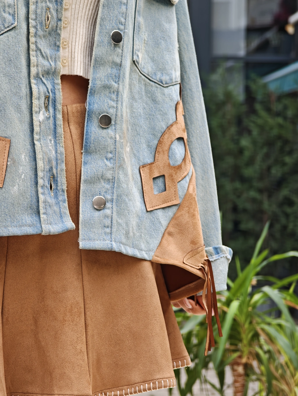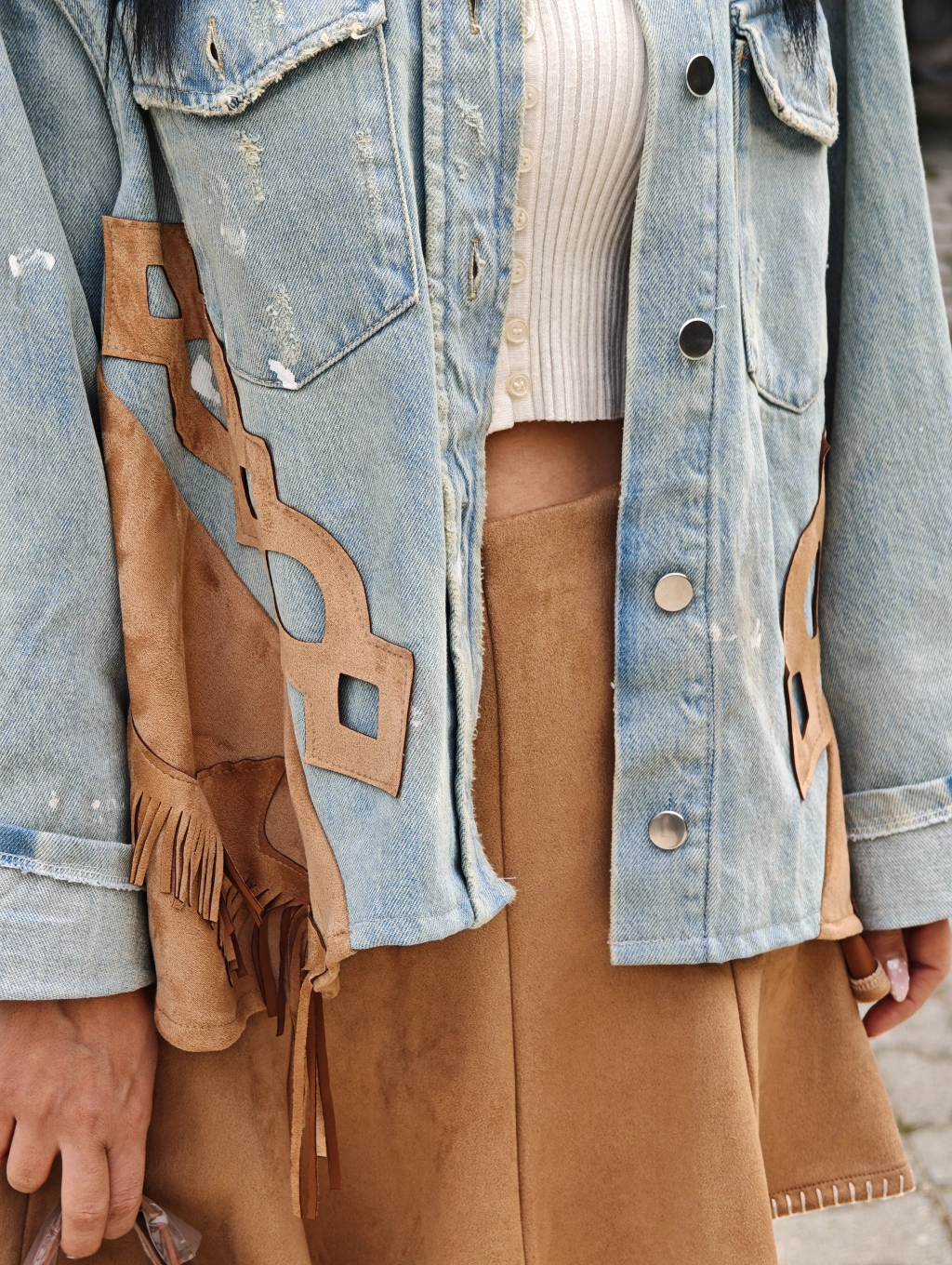 PÜSKÜLLÜ SÜET DETAYLI TASARIM JEAN CEKET