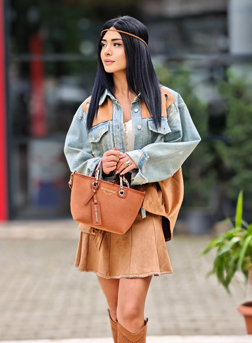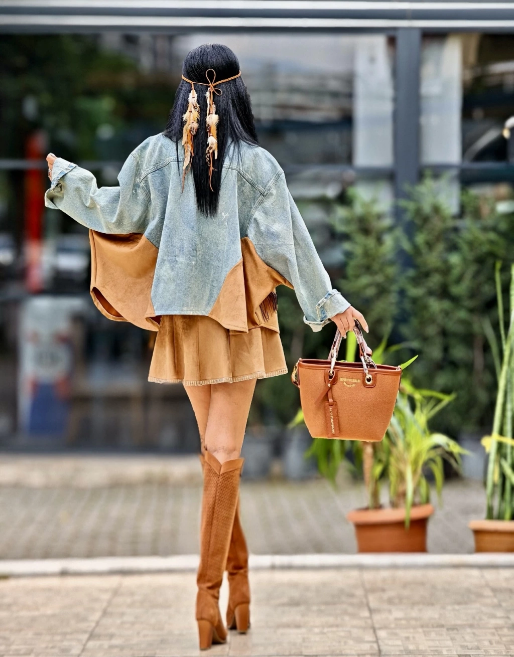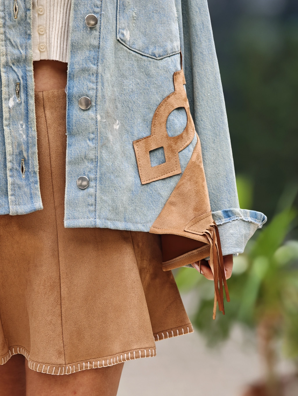PÜSKÜLLÜ SÜET DETAYLI TASARIM JEAN CEKET