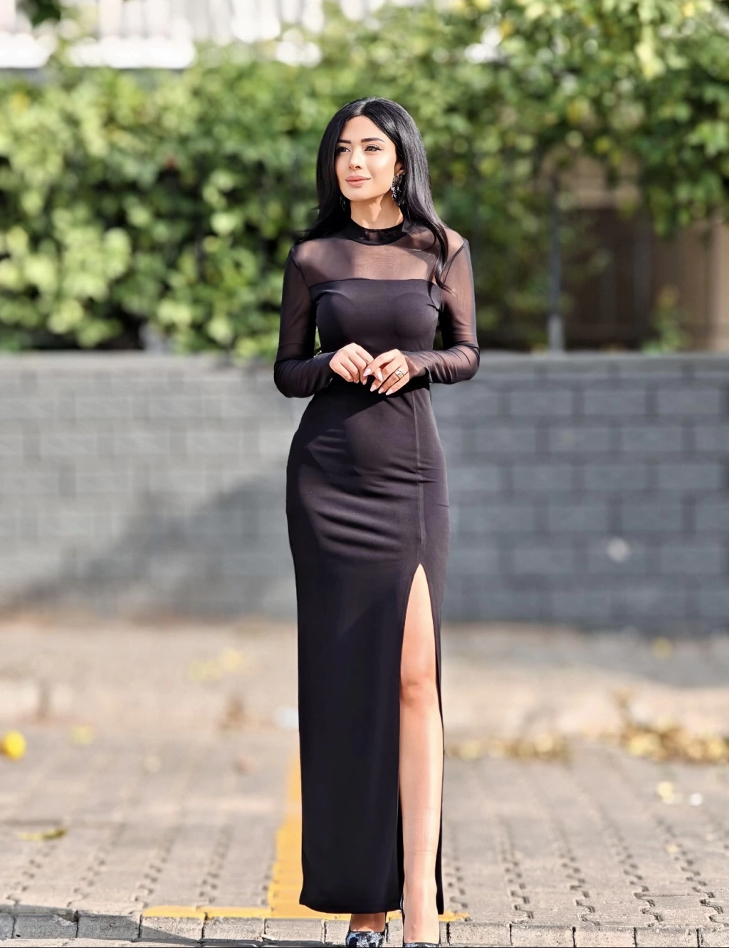 TRANSPARAN BEL DETAYLI SİYAH ELBİSE