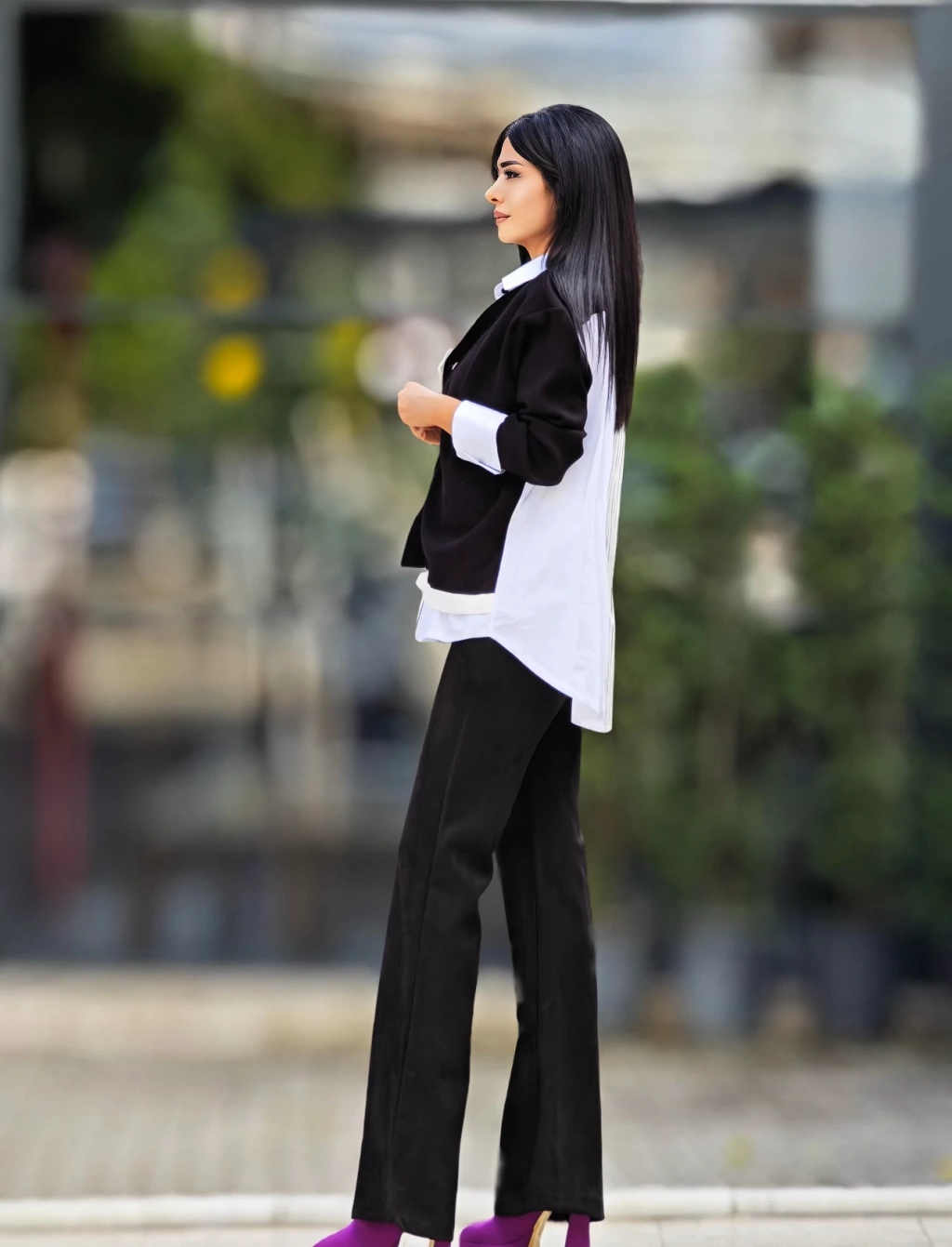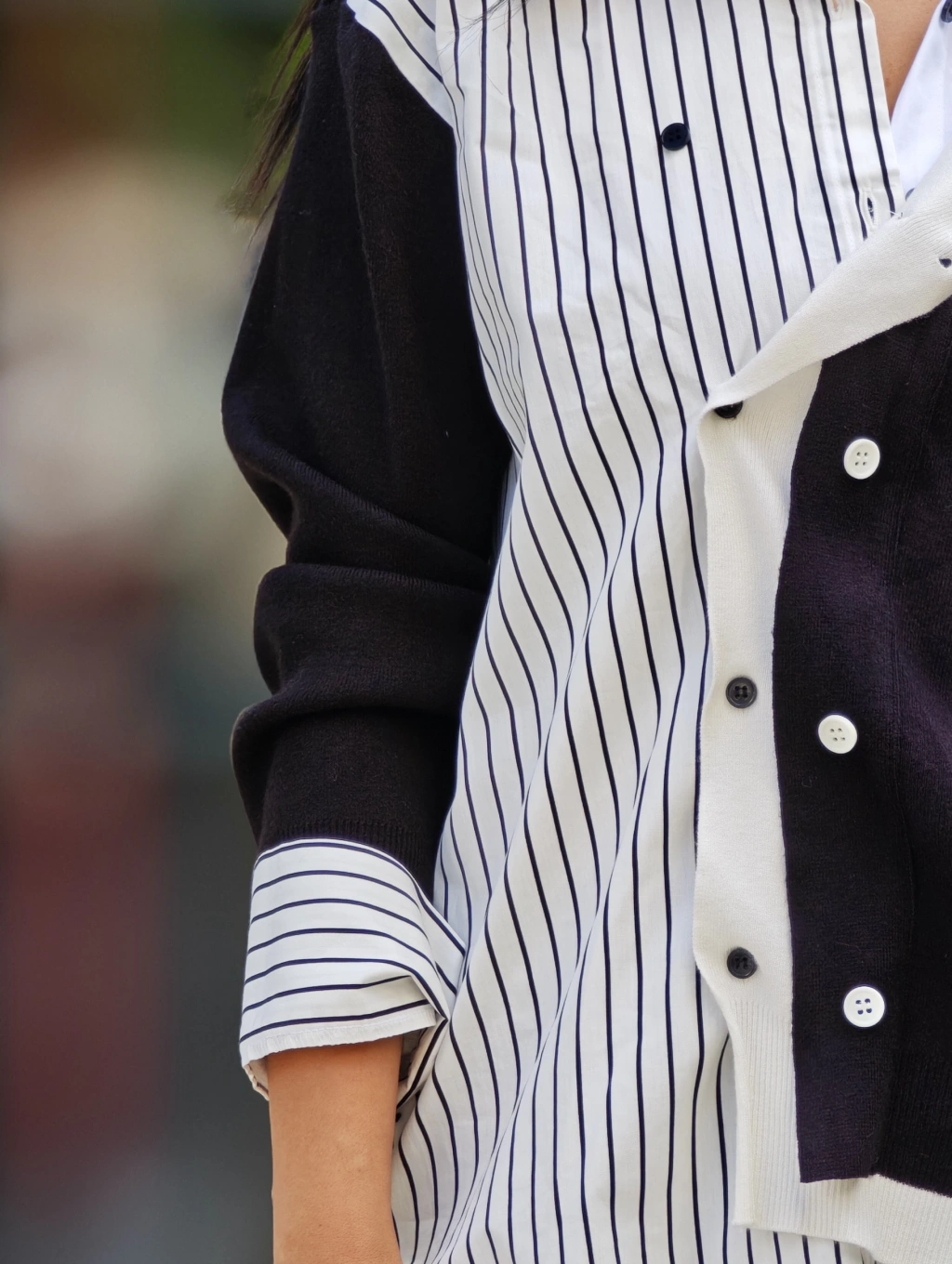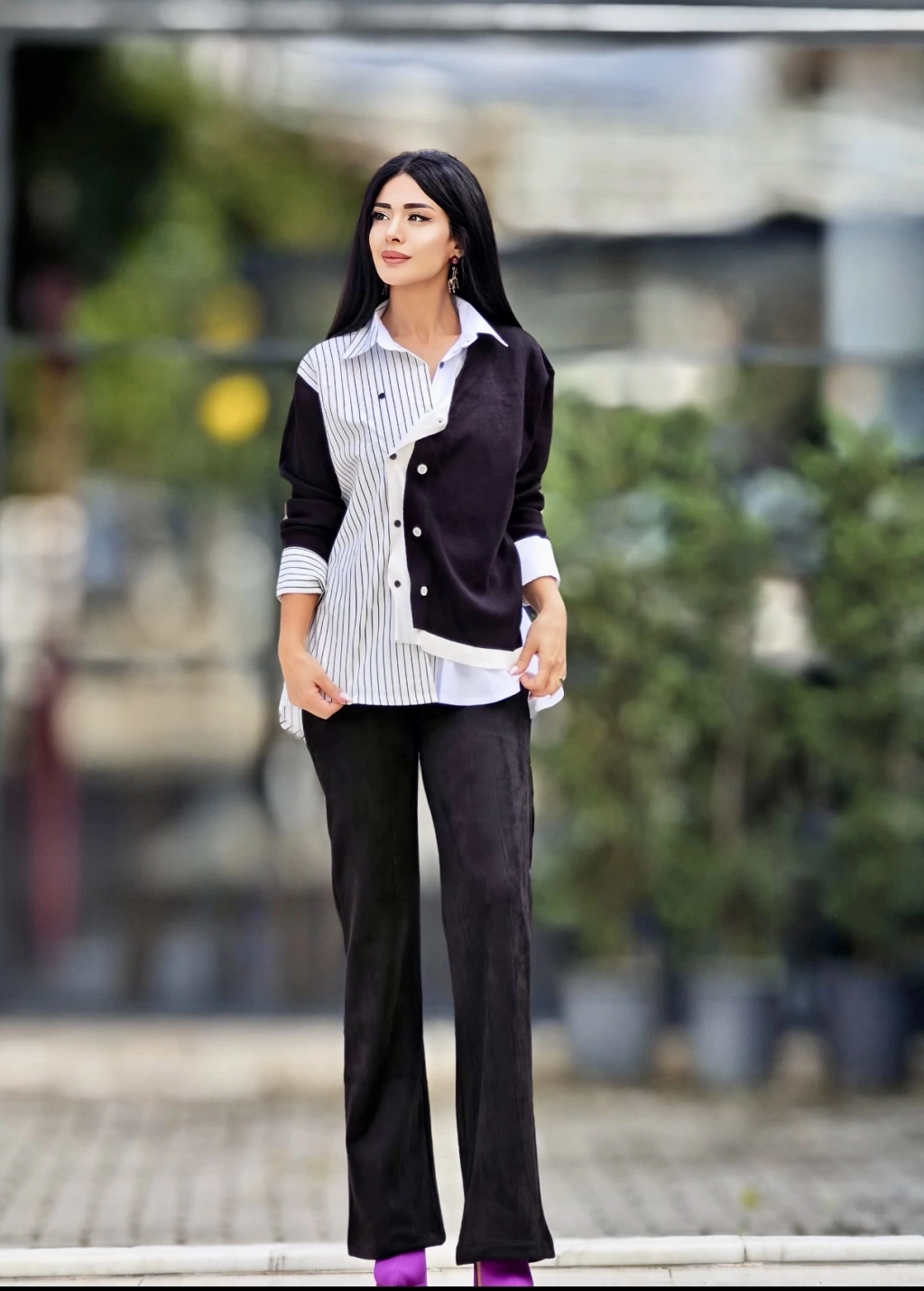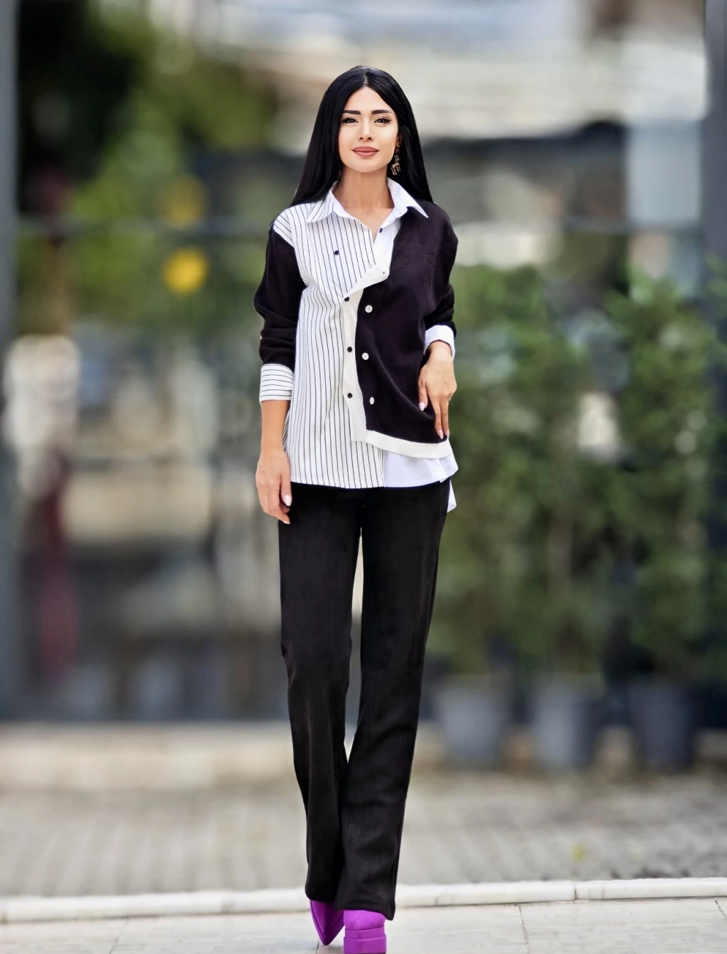 TRİKO DETAYLI SİYAH BEYAZ GÖMLEK