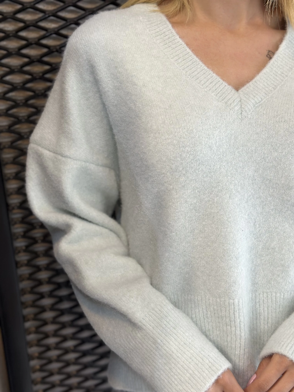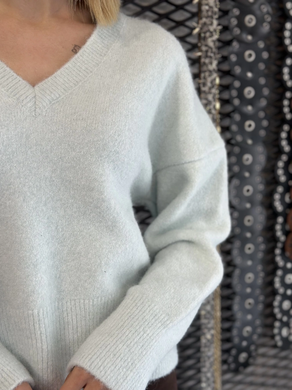 V YAKA AÇIK MİNT TRİKO KAZAK
