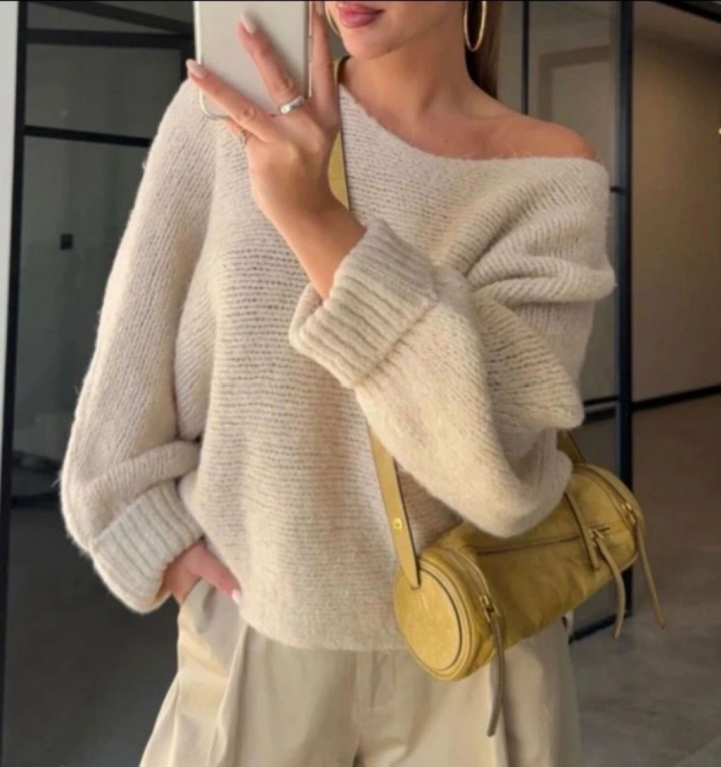İNCİ TÜL DETAY KAYIK YAKA TRİKO KAZAK