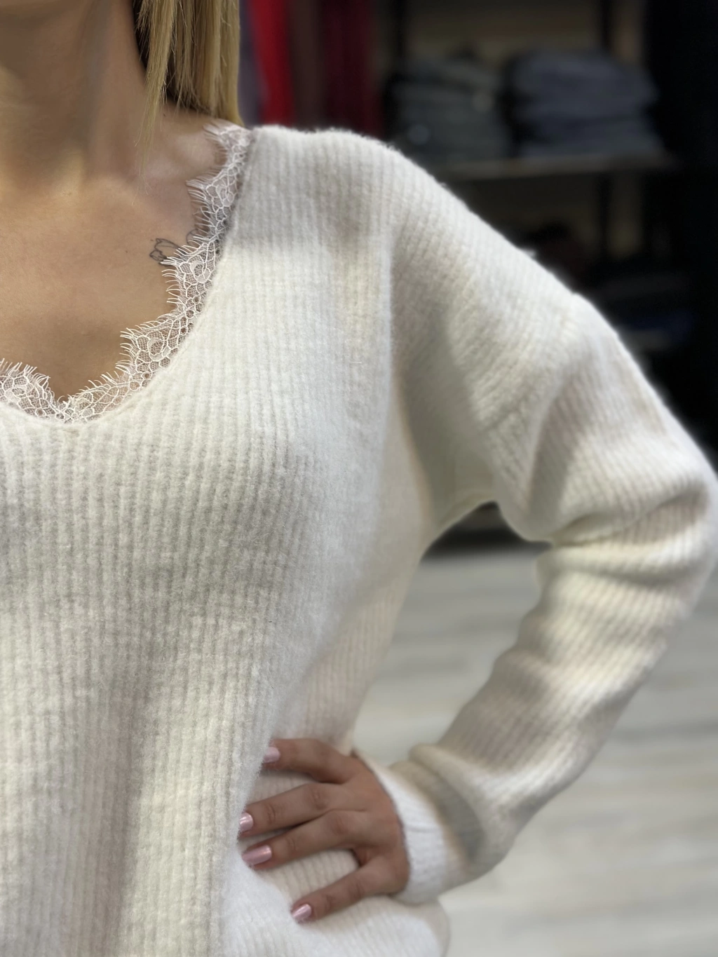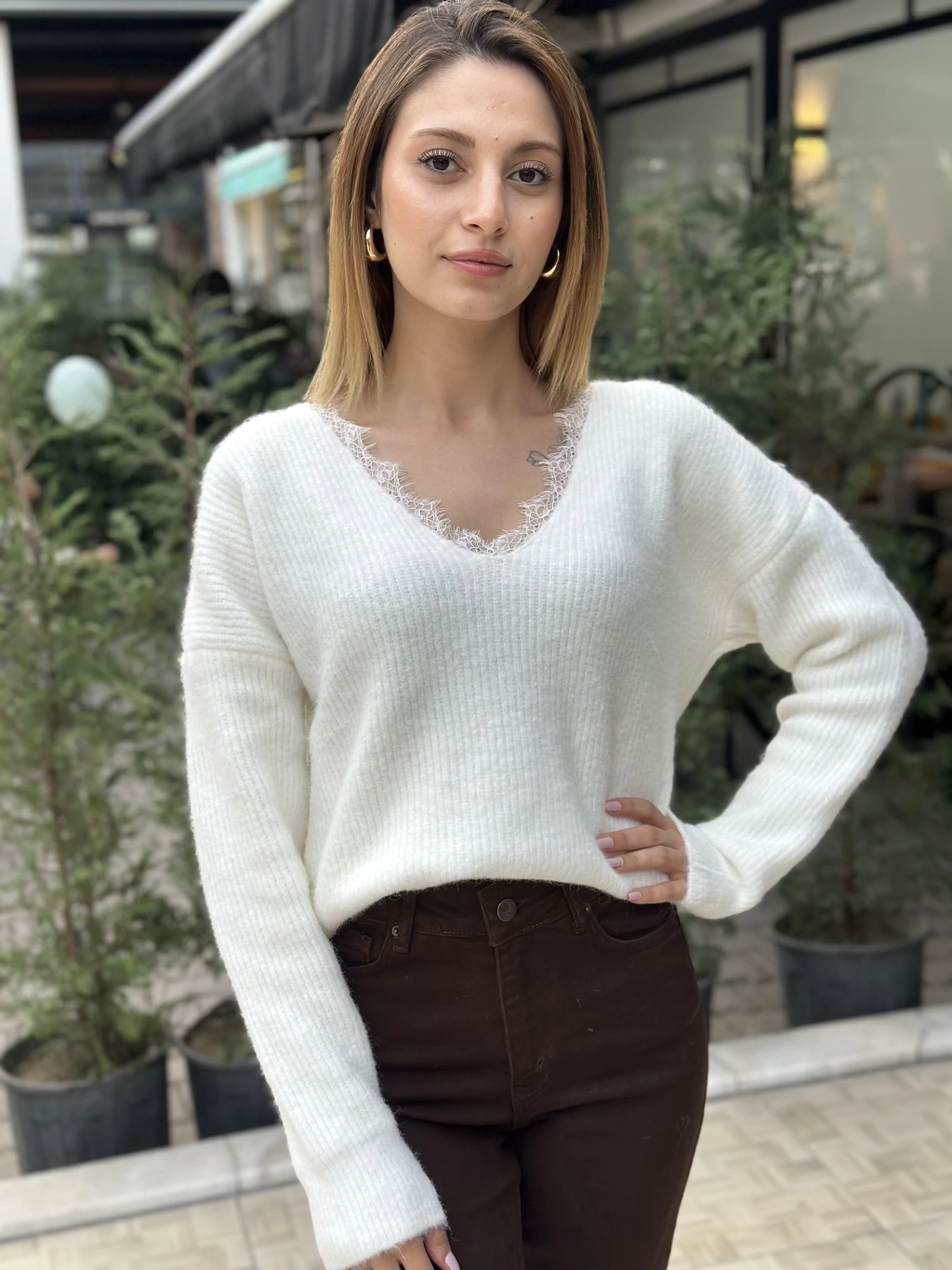YAKASI DANTEL DETAY BEYAZ YUMOŞ KAZAK