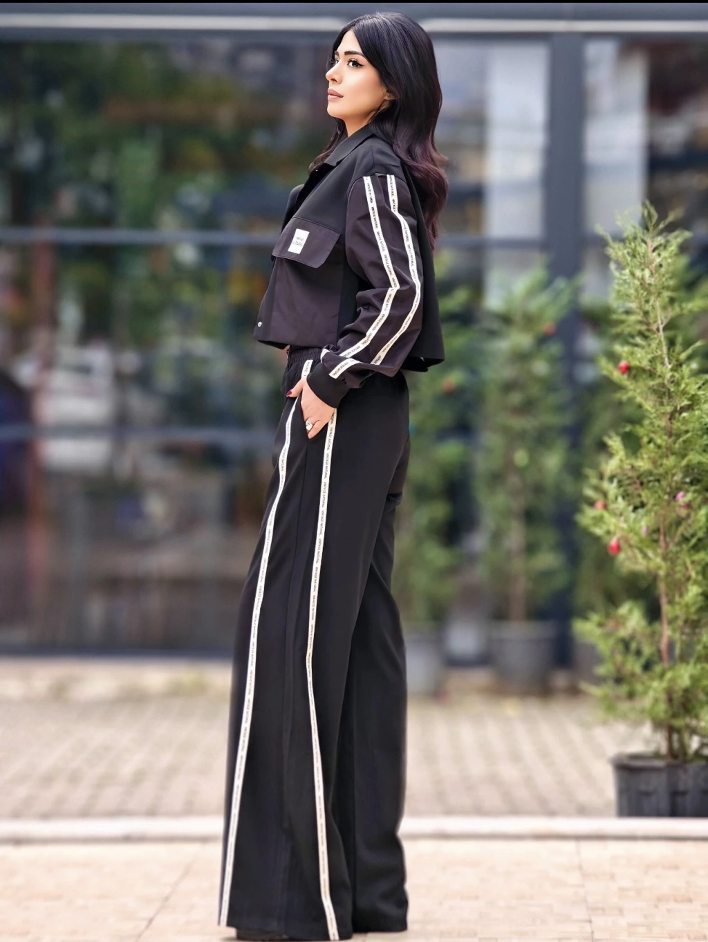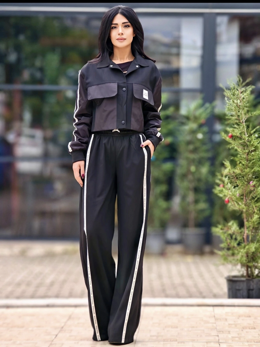 YAN ŞERİTLİ SPOR CEKET SİYAH