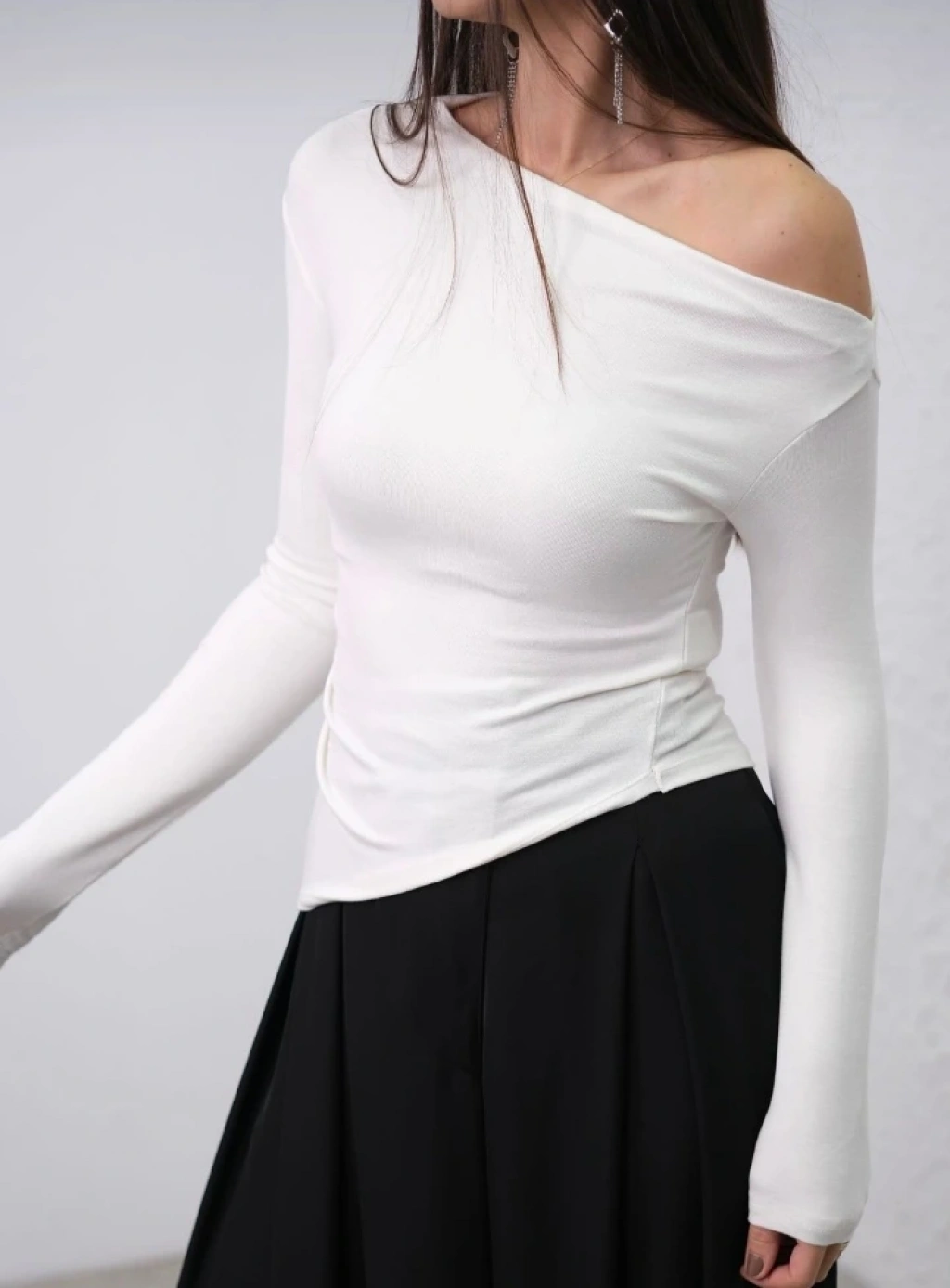 DERİ TOKA DETAY ASİMETRİK SİYAH BLUZ