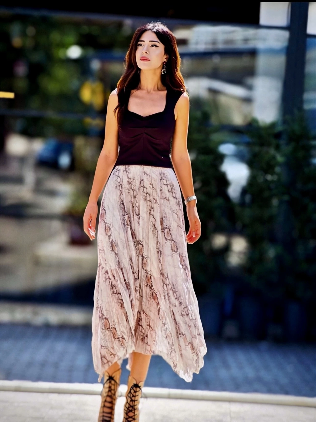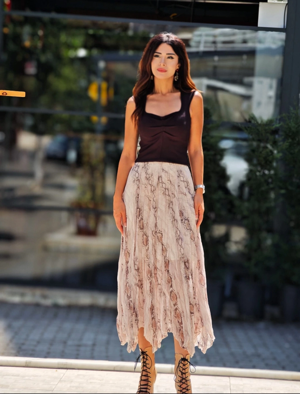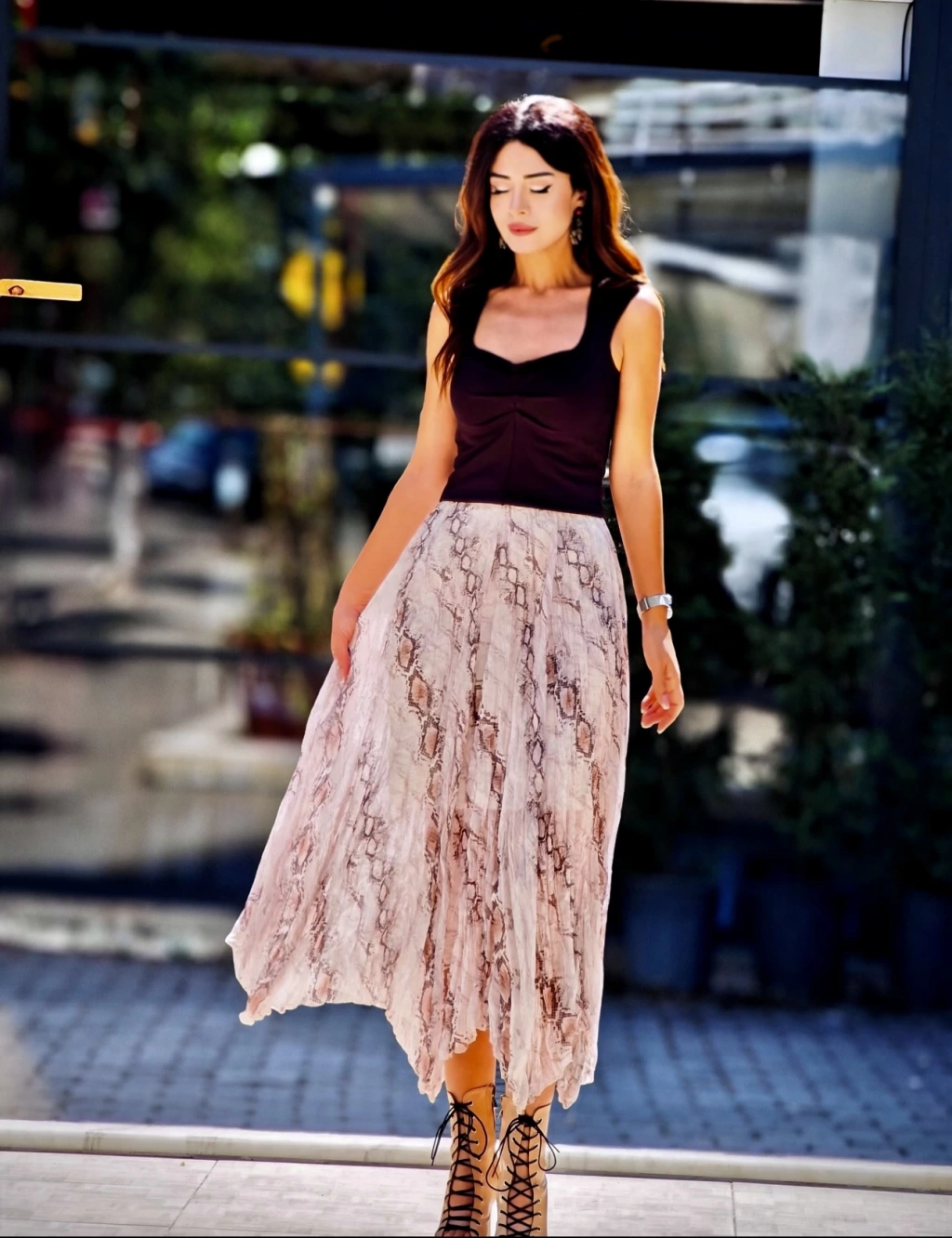 YILAN DESENLİ YIRTMAÇLI ETEK