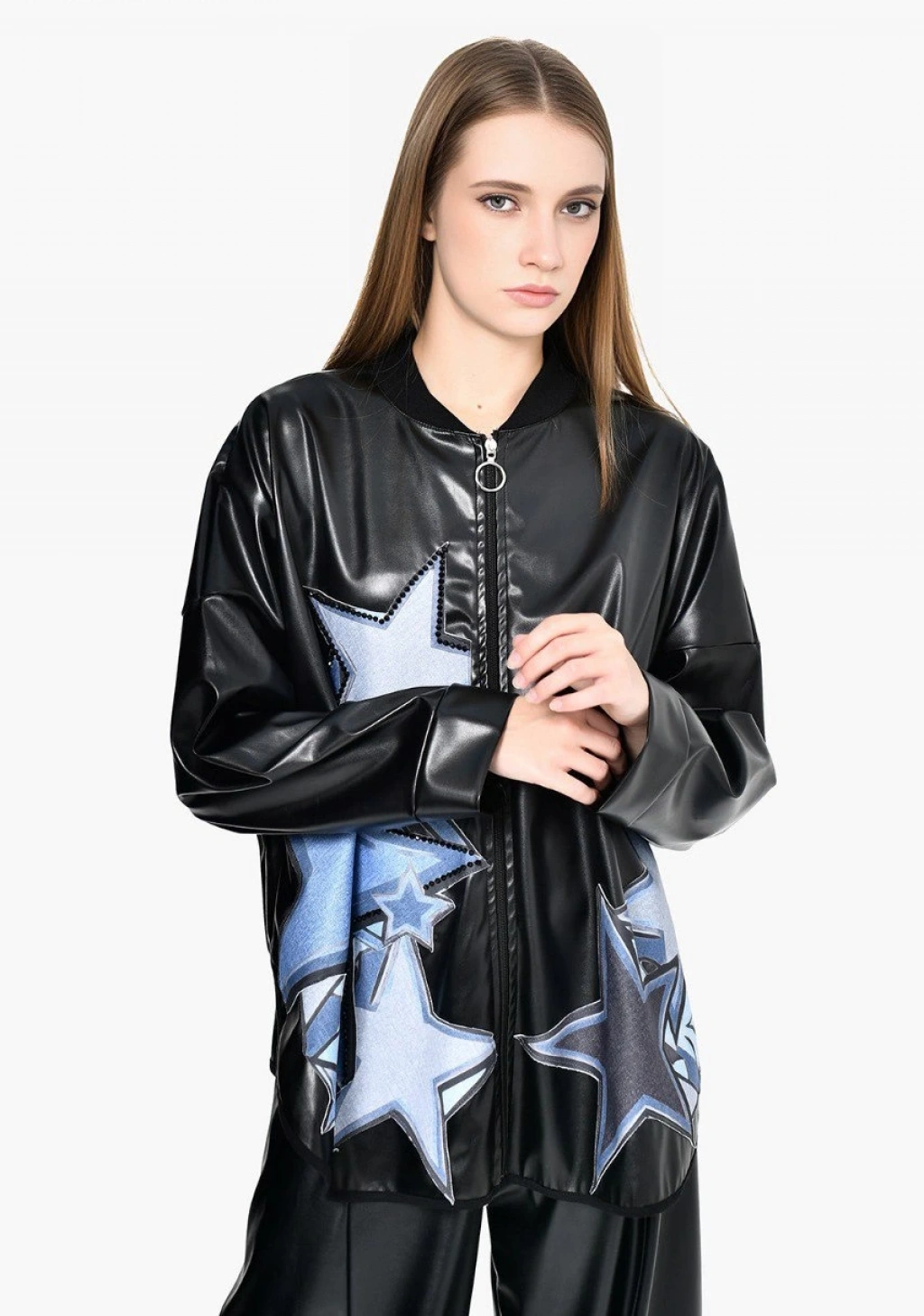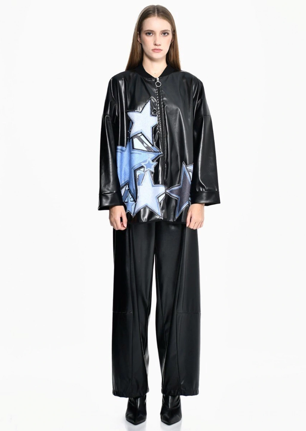 KUŞGÖZÜ DETAYLI DERİ CEKET
