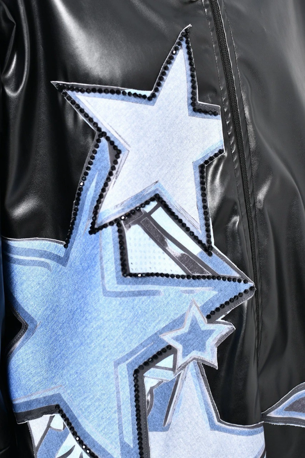 SIRTI KALPLİ TAŞ İŞLEMELİ KOT CEKET