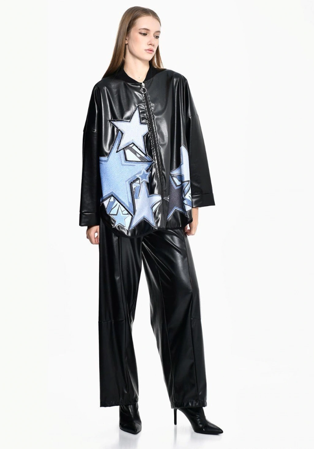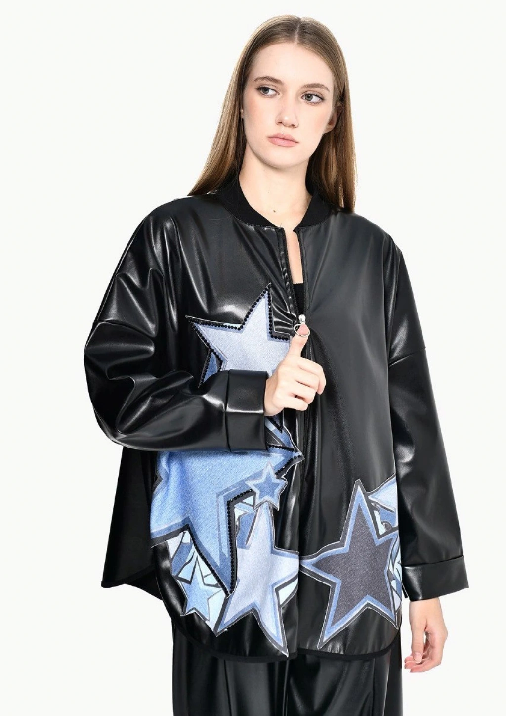 DERİ ÇİÇEK DETAYLI JEAN CEKET