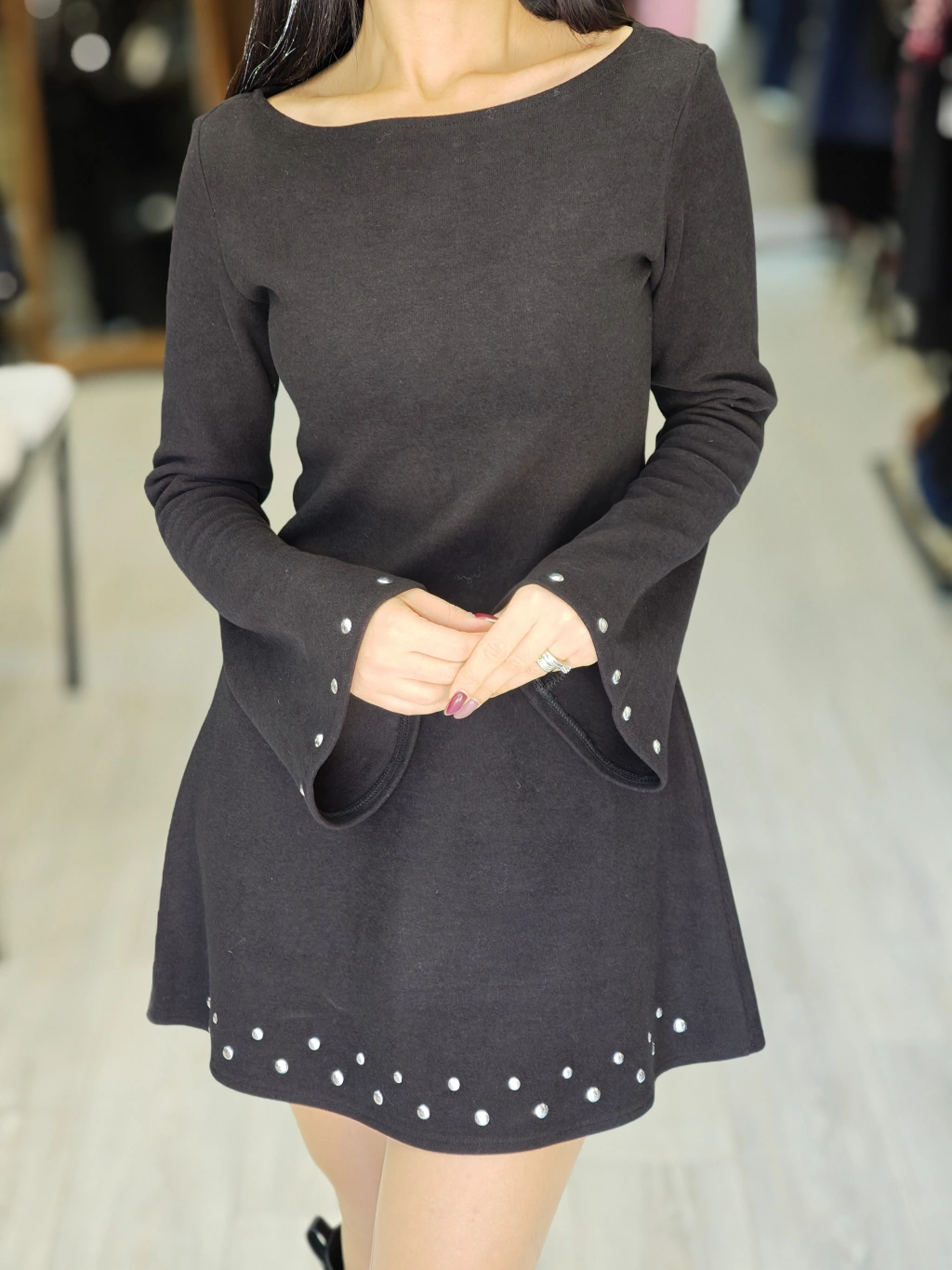 PIRILTILI İNCİ DÜĞMELİ KAHVE ELBİSE